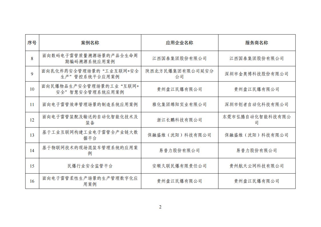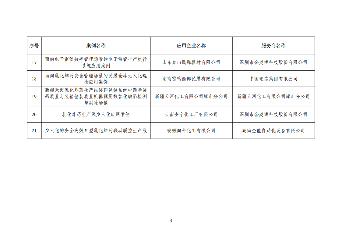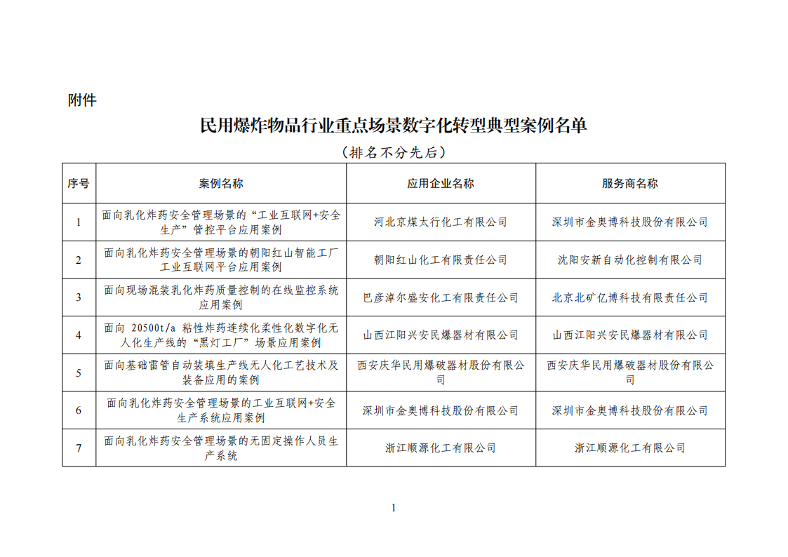 附件:民用爆炸物品行业重点场景数字化转型典型案例名单