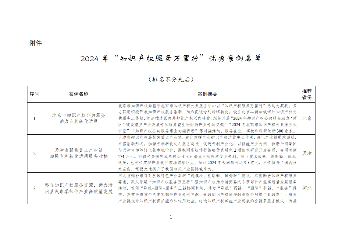 国家知识产权局办公室关于公布2024年“知识产权服务万里行”活动优秀案例的通知
