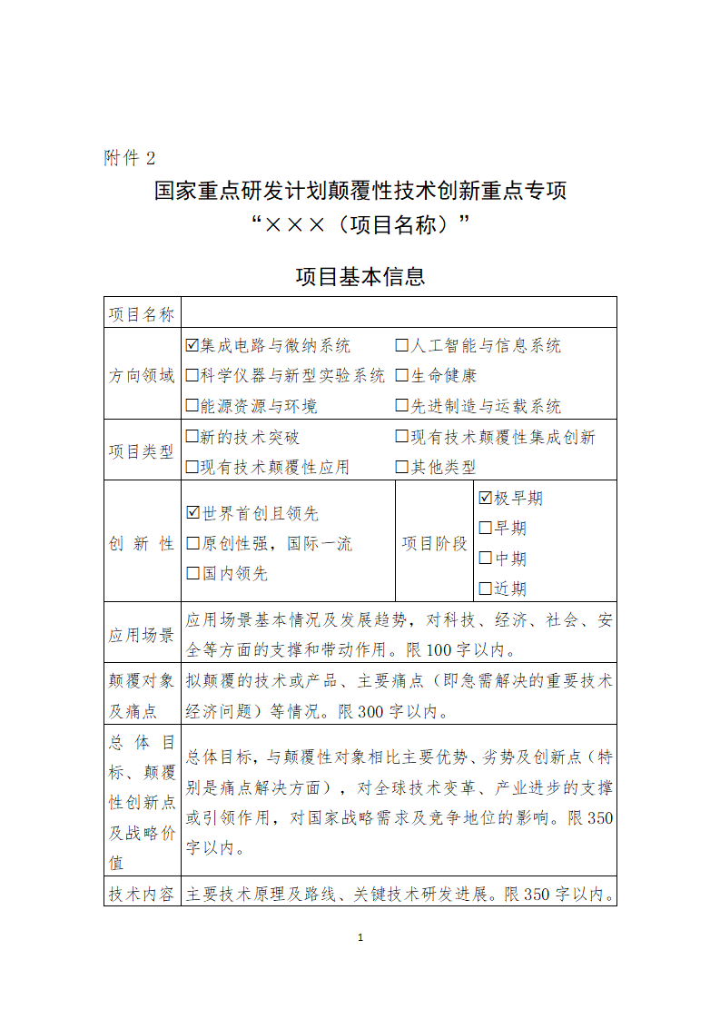 国家重点研发计划颠覆性技术创新重点专项2025年度脑机系统领域项目申报指引