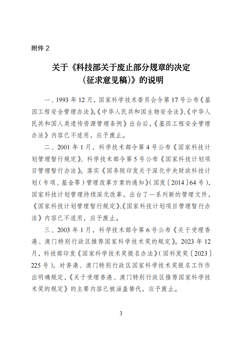 2. 关于《科技部关于废止部分规章的决定(征求意见稿)》的说明