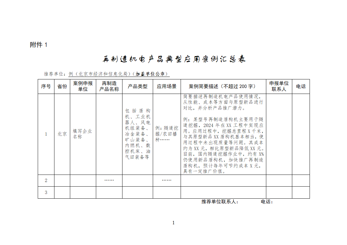(二)请各省级工业和信息化主管部门于2025年9月1日前,将加盖公章的推荐文件及典型案例汇总表(附件1)报送至工业和信息化部(节能与综合利用司),并将典型案例汇总表及典型案例申报表(附件1、2)电子版发送至zyzhly@miit.gov.cn。