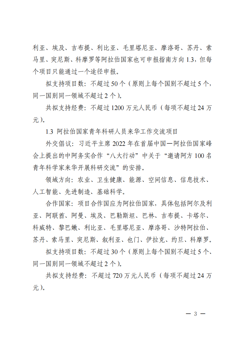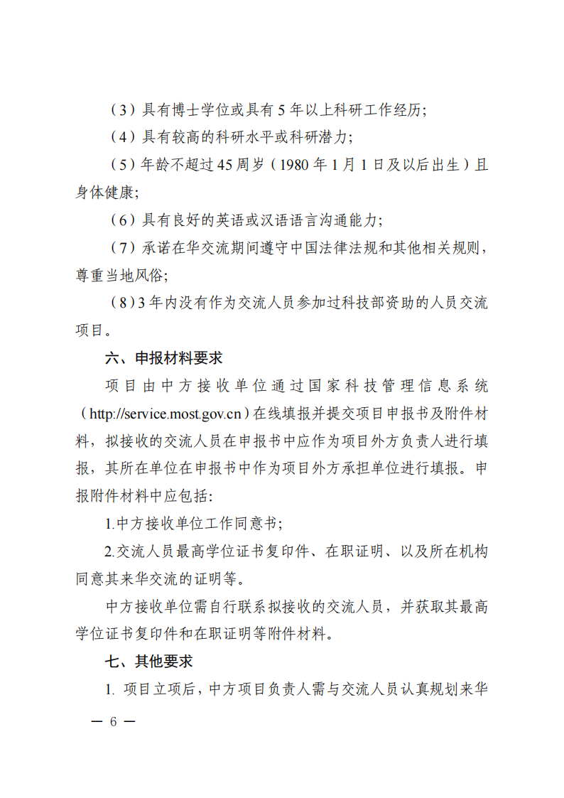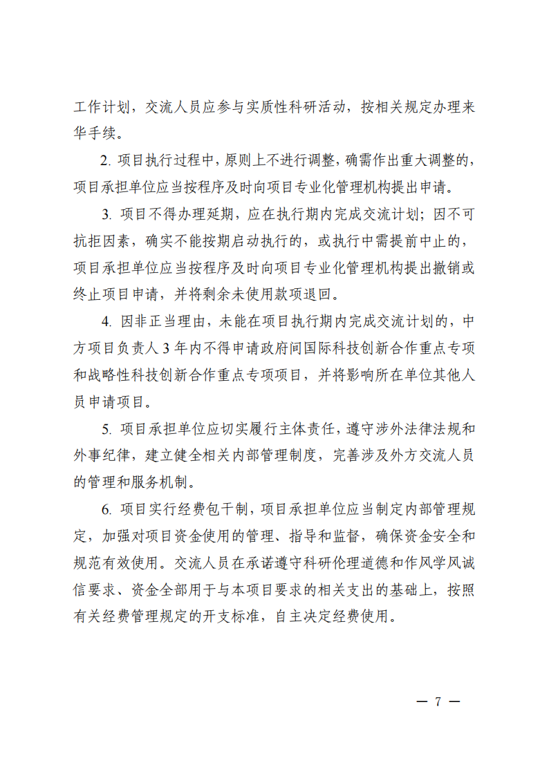 3. 本批次指南项目属于“战略性科技创新合作”重点专项人员交流类项目,不计入项目负责人申请和承担国家重点研发计划项目、国家科技重大专项(含科技创新2030—重大项目)的项目总数限项范围(不进行项目负责人限项联合审查),但项目负责人申请和在研的同一国别的人员交流类项目合计不得超过1项。