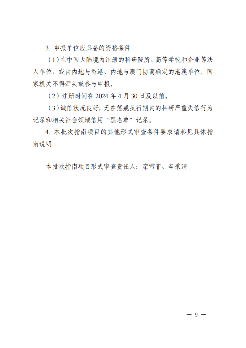 1. 本批次指南的项目申报单位应为在中国大陆境内注册的科研院所、高等学校和企业等,或由内地与香港、内地与澳门协商确定的港澳单位(附件1)。