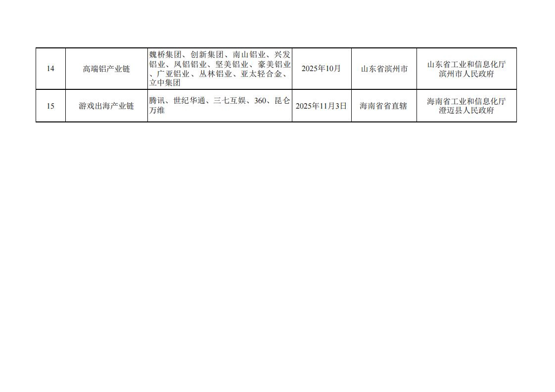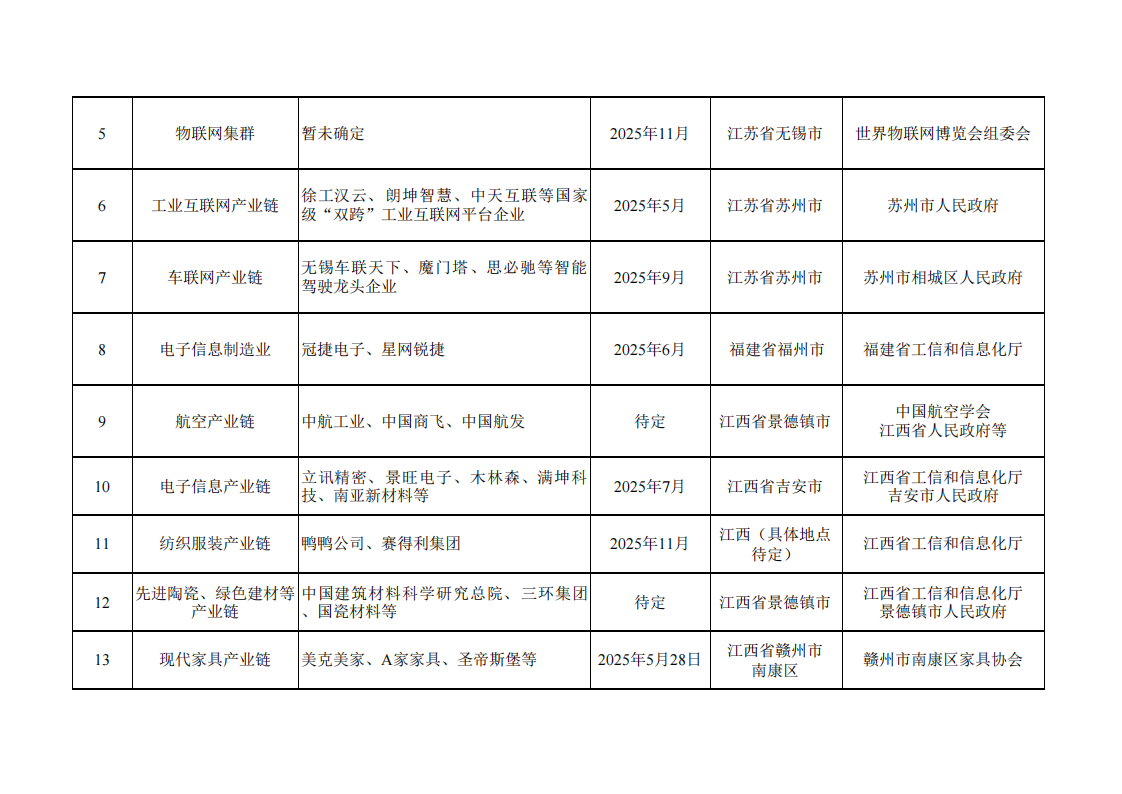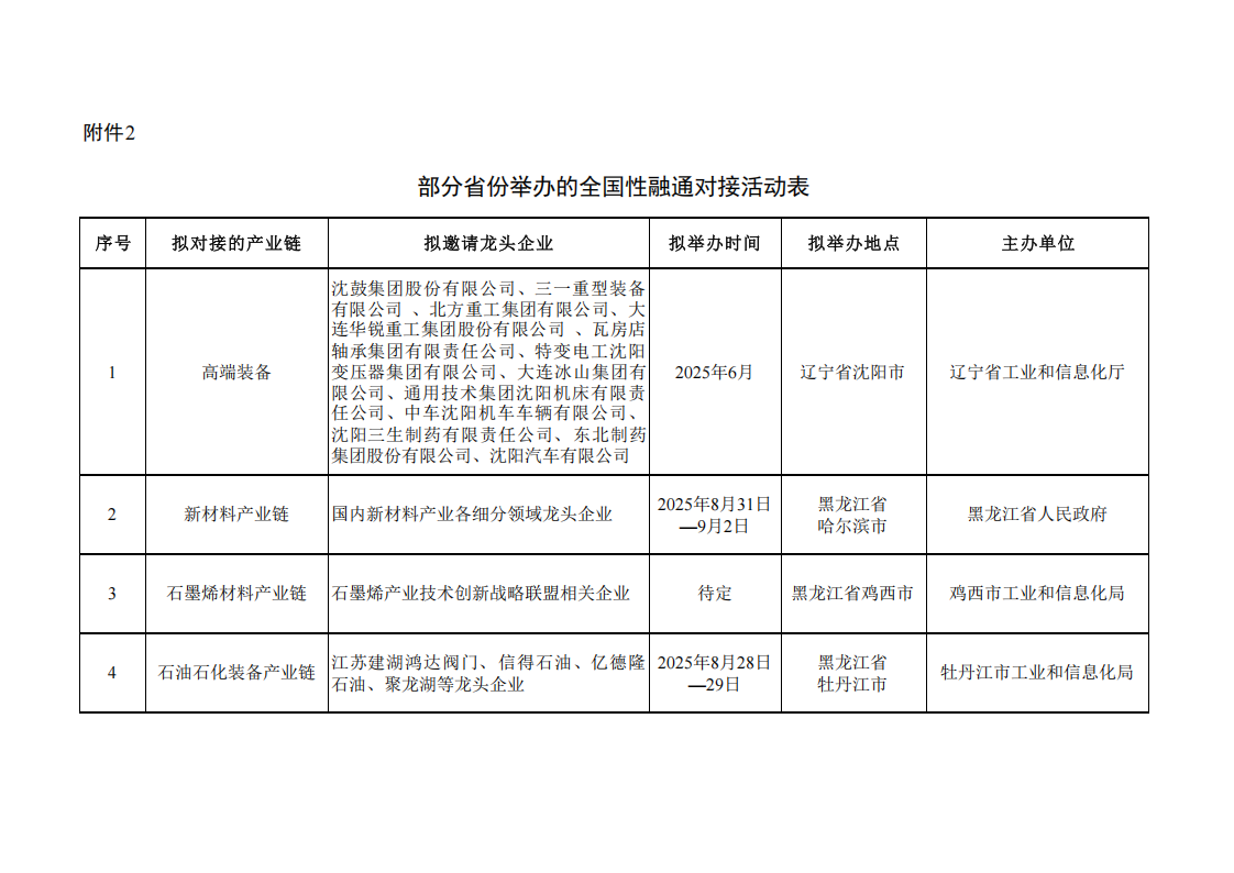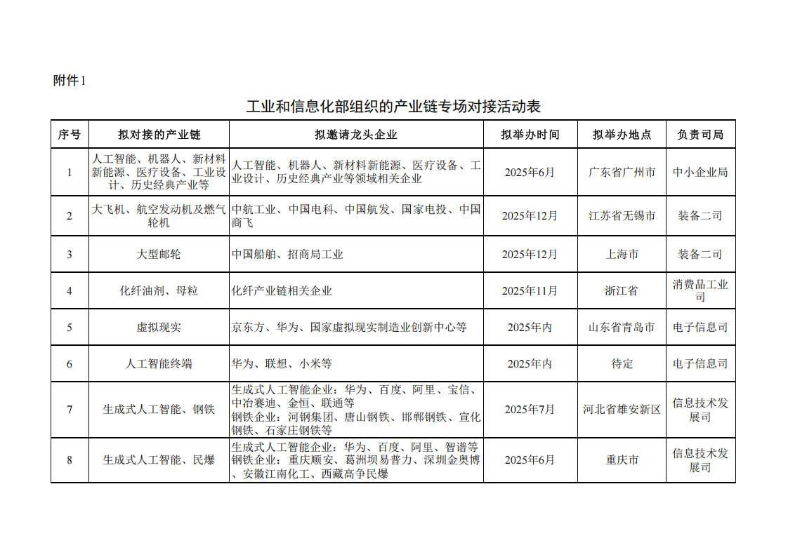 附件:1.工业和信息化部组织的产业链专场对接活动表