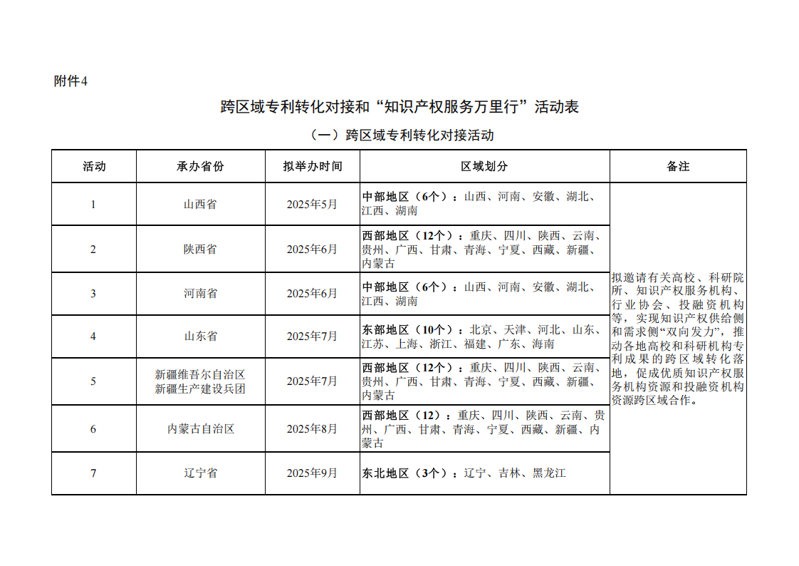 4.跨区域专利转化对接和“知识产权服务万里行”活动表