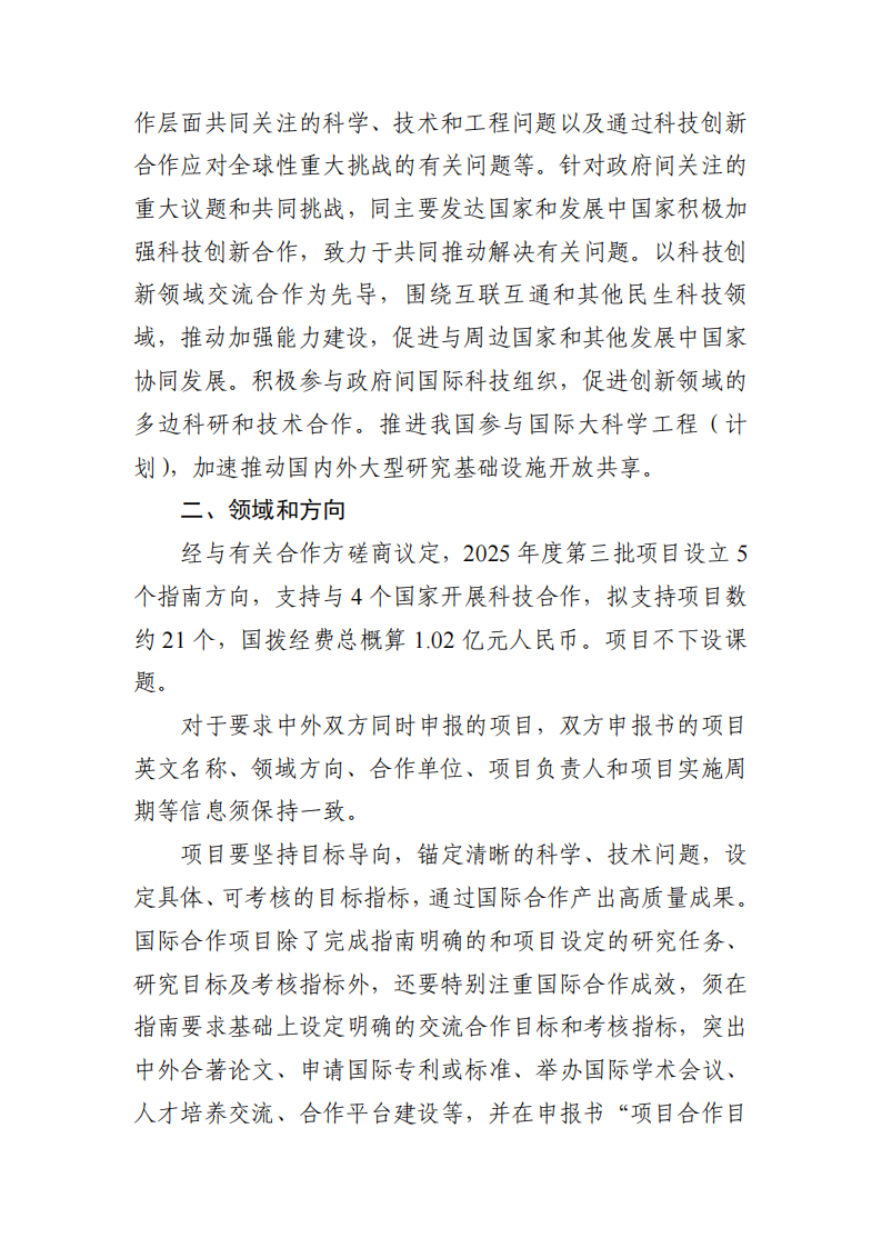 国家重点研发计划“政府间国际科技创新合作”重点专项2025年度第三批项目申报指南征求意见