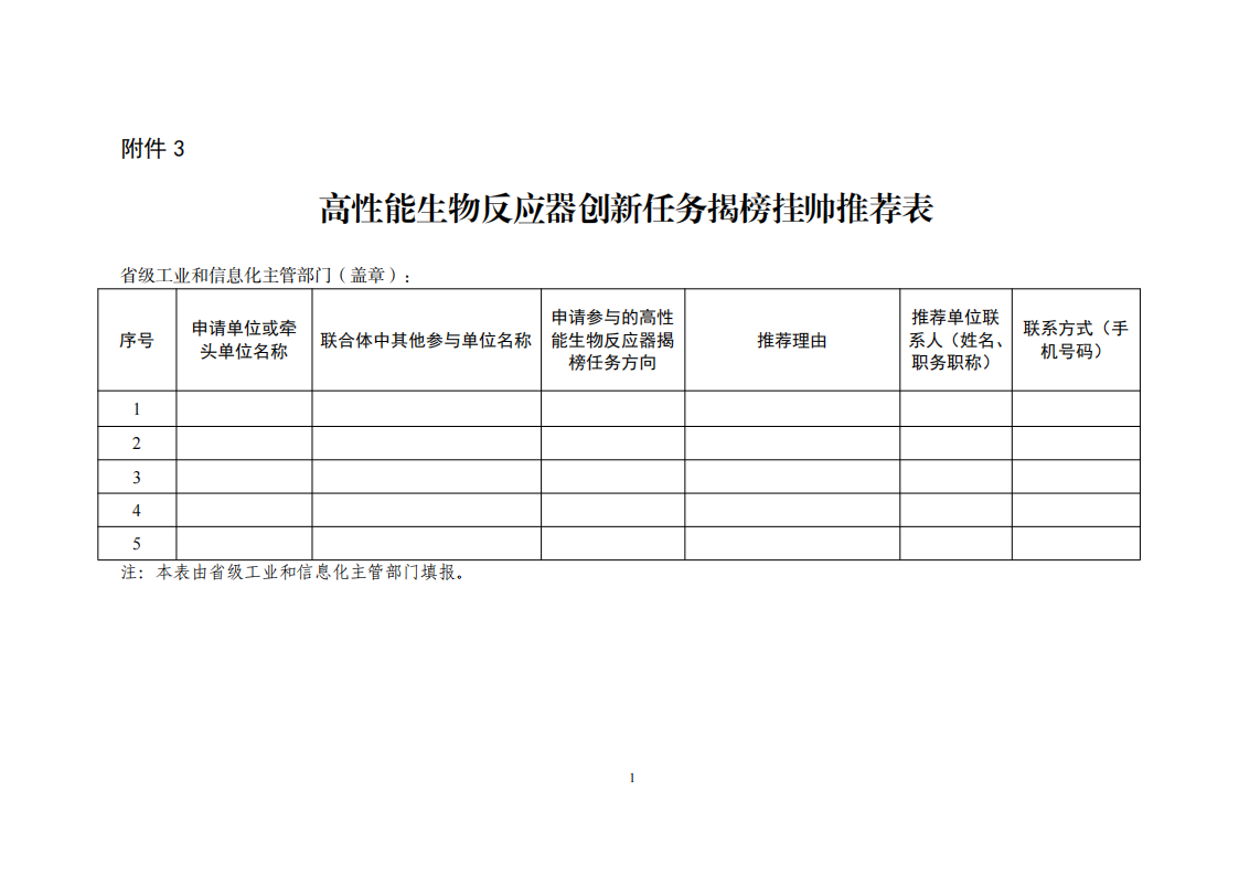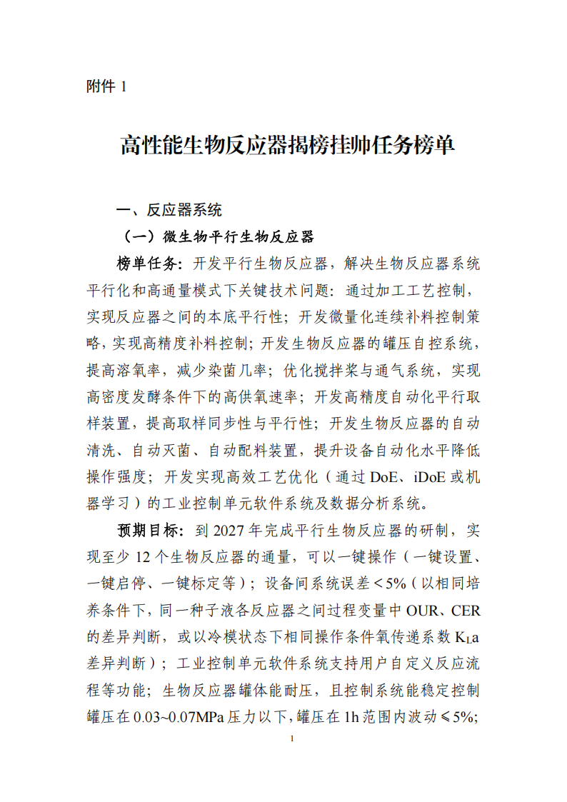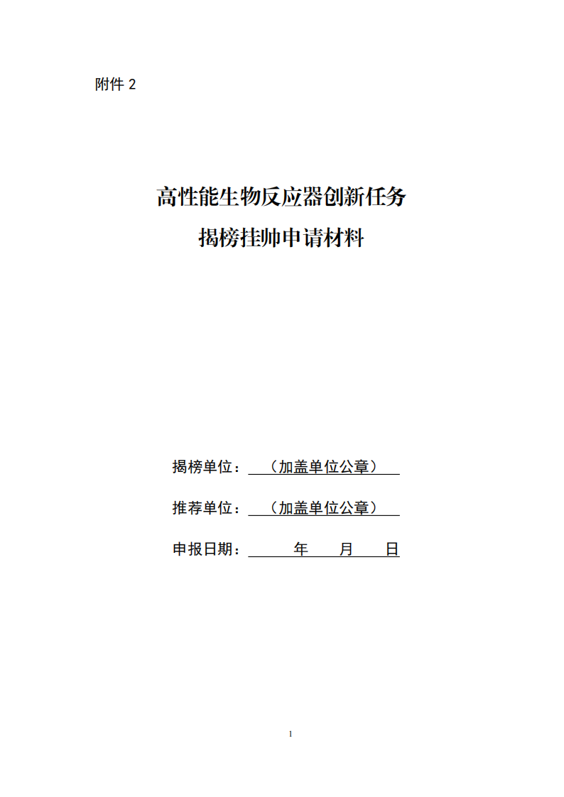 附件:1.高性能生物反应器创新任务揭榜挂帅榜单