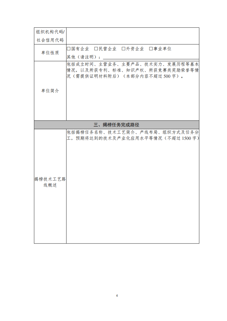 (一)提出申请。申请单位或联合体牵头单位按照本通知及《高性能生物反应器创新任务揭榜挂帅榜单》(附件1)要求,填写《高性能生物反应器创新任务揭榜挂帅申请材料》(附件2),于2025年6月30日前提交至所在地省级工业和信息化主管部门。联合体牵头单位应将所有参与单位情况汇总后统一填写并提交。