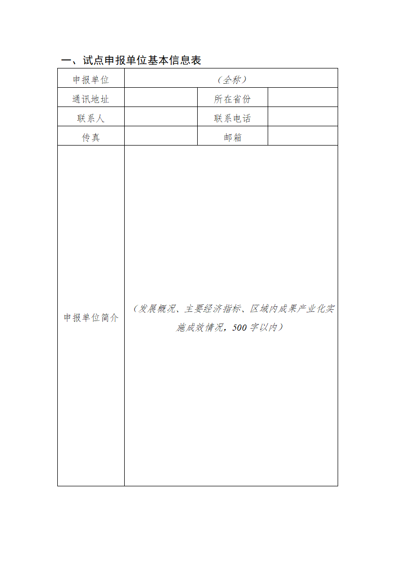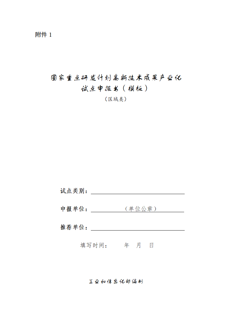 附件:1.国家重点研发计划高新技术成果产业化试点申报书(区域类)