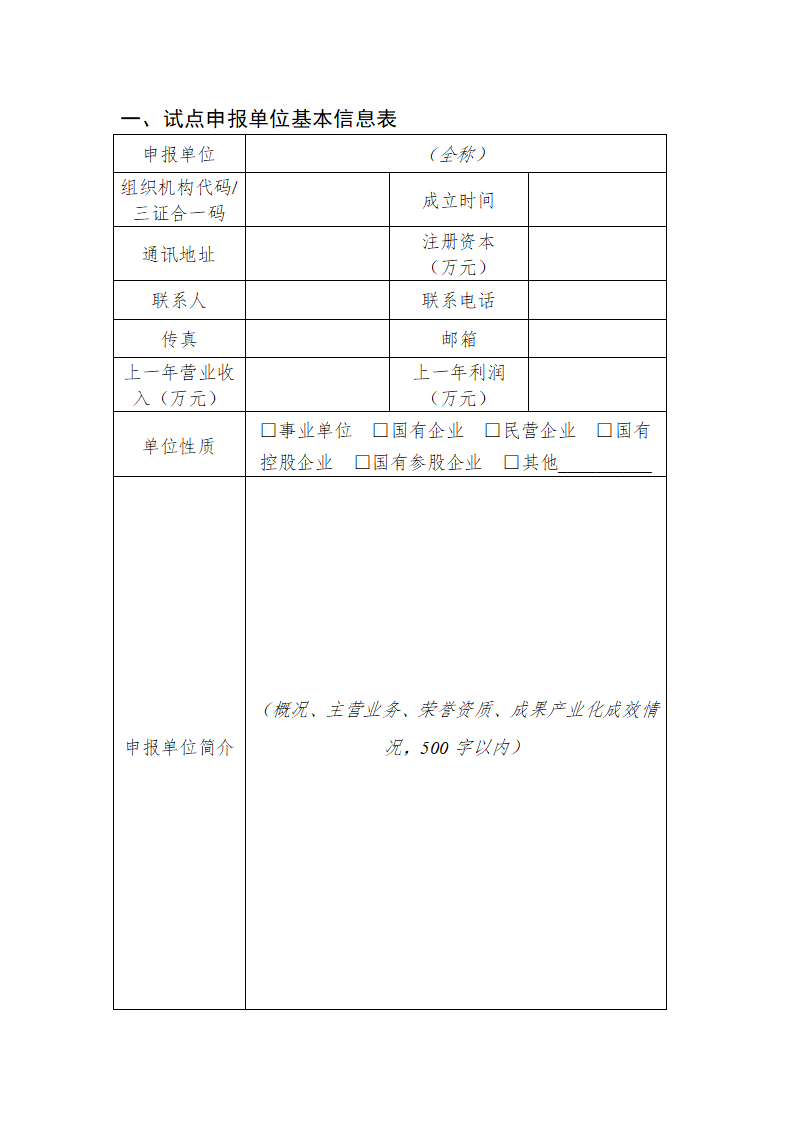 (二)试点单位。申报对象须在中华人民共和国境内注册、具备独立法人资格,无违法违纪、侵犯他人知识产权行为,无重大失信记录,有承担试点工作的保障机制和人员力量。按照在成果产业化工作中承担的角色不同,分为以下三类主体申报。