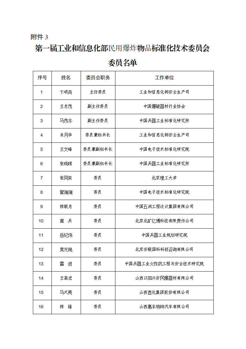 3.第一届工业和信息化部民用爆炸物品标准化技术委员会委员名单