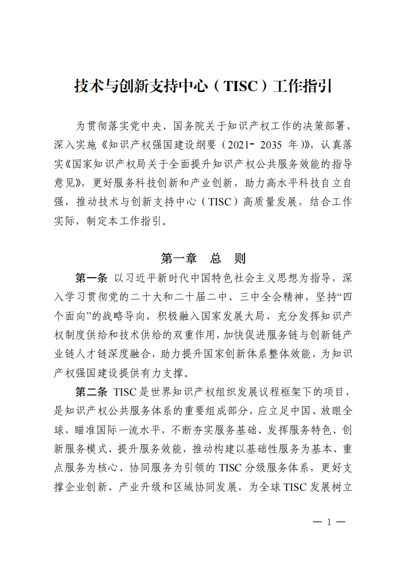 国家知识产权局办公室关于印发《技术与创新支持中心(TISC)工作指引》的通知
