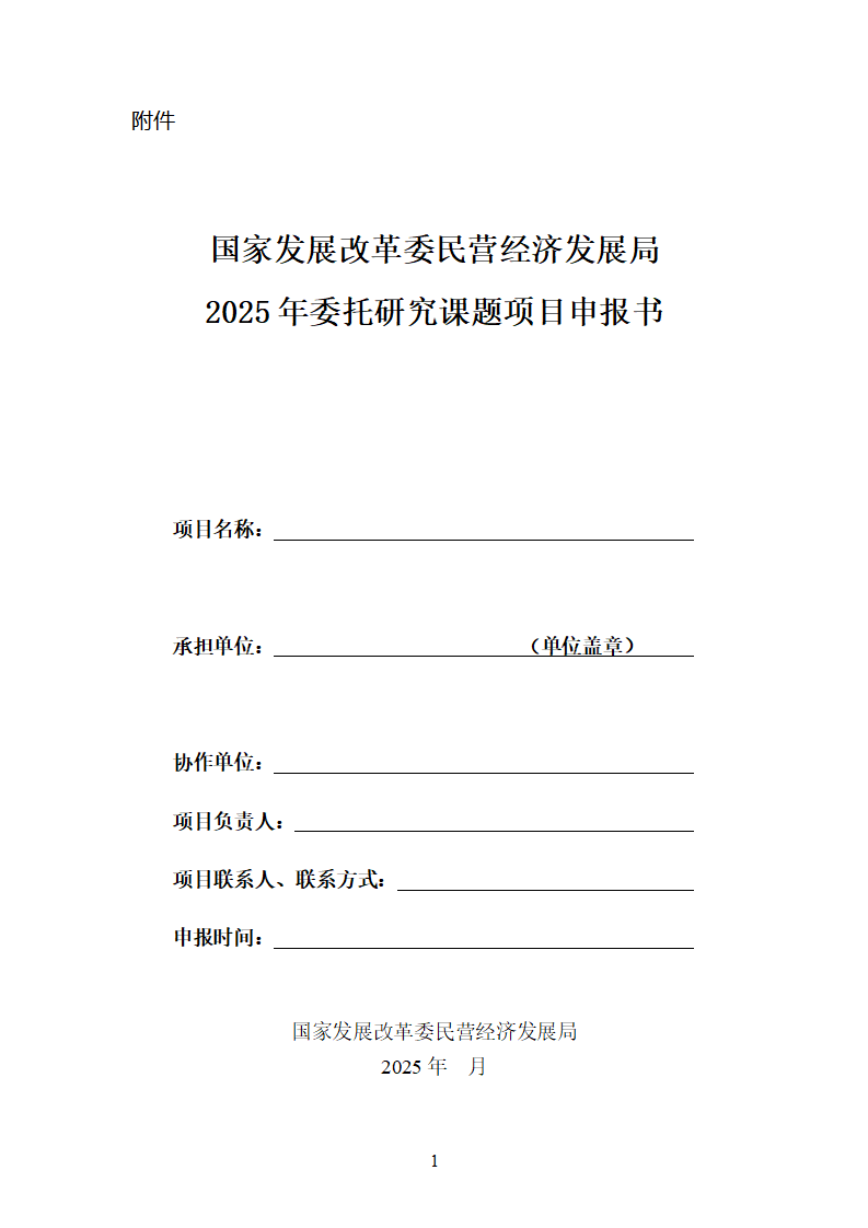 附件:国家发展改革委民营经济发展局2025年委托研究课题项目申报书