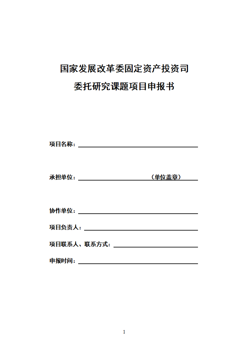 附件:国家发展改革委固定资产投资司委托研究课题项目申报书