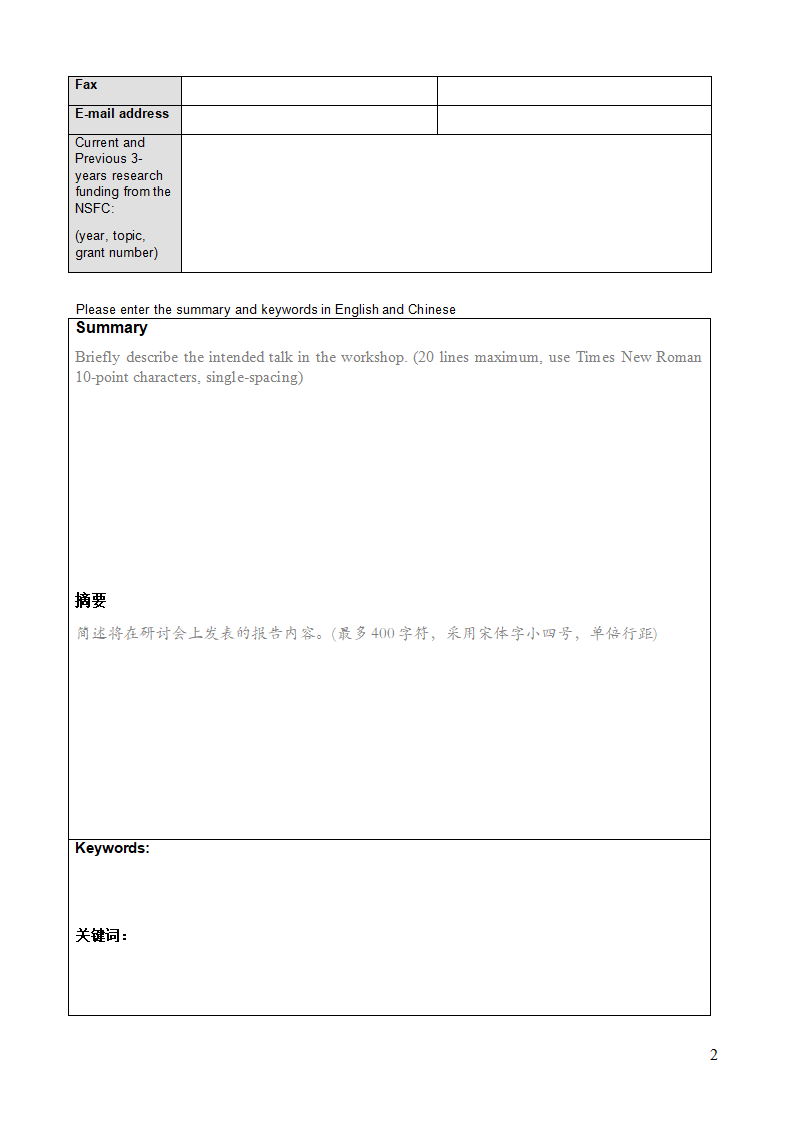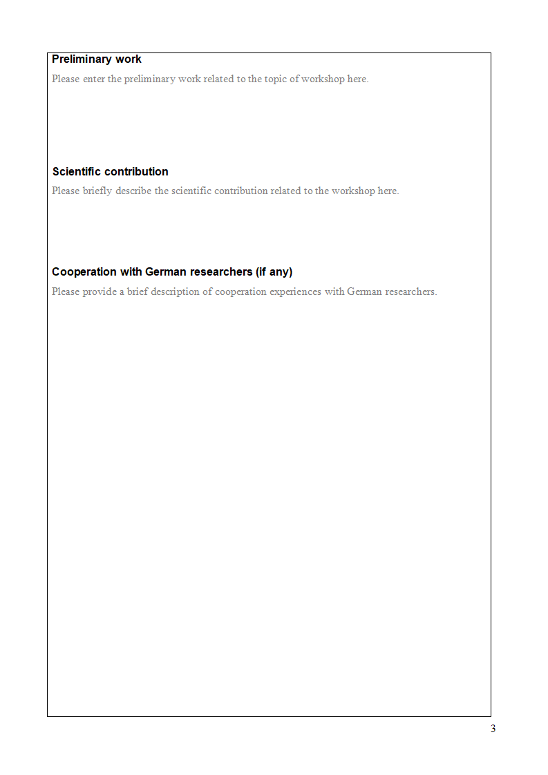 (2)申请书摘要需包含研讨会上预期报告的内容,以及与德国合作伙伴前期或正在进行的合作(如有此情况)。