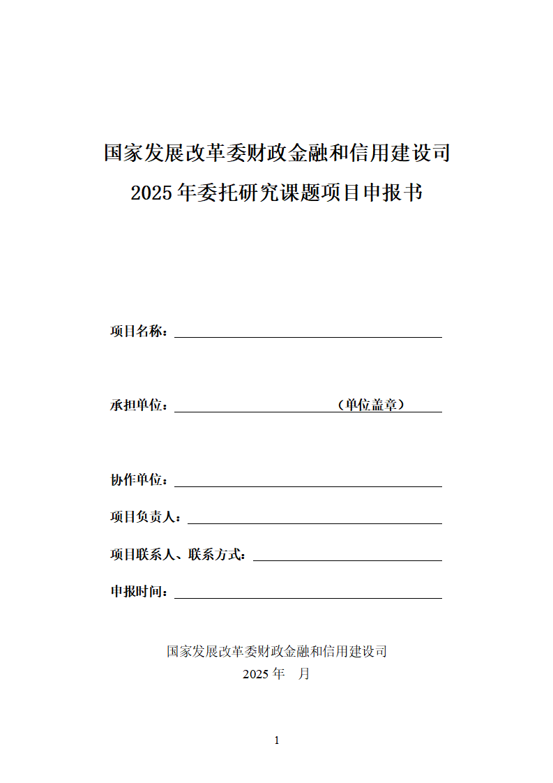 附件:国家发展改革委财政金融和信用建设司2025年委托研究课题项目申报书