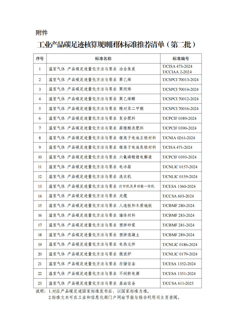 附件:工业产品碳足迹核算规则团体标准推荐清单(第二批)
