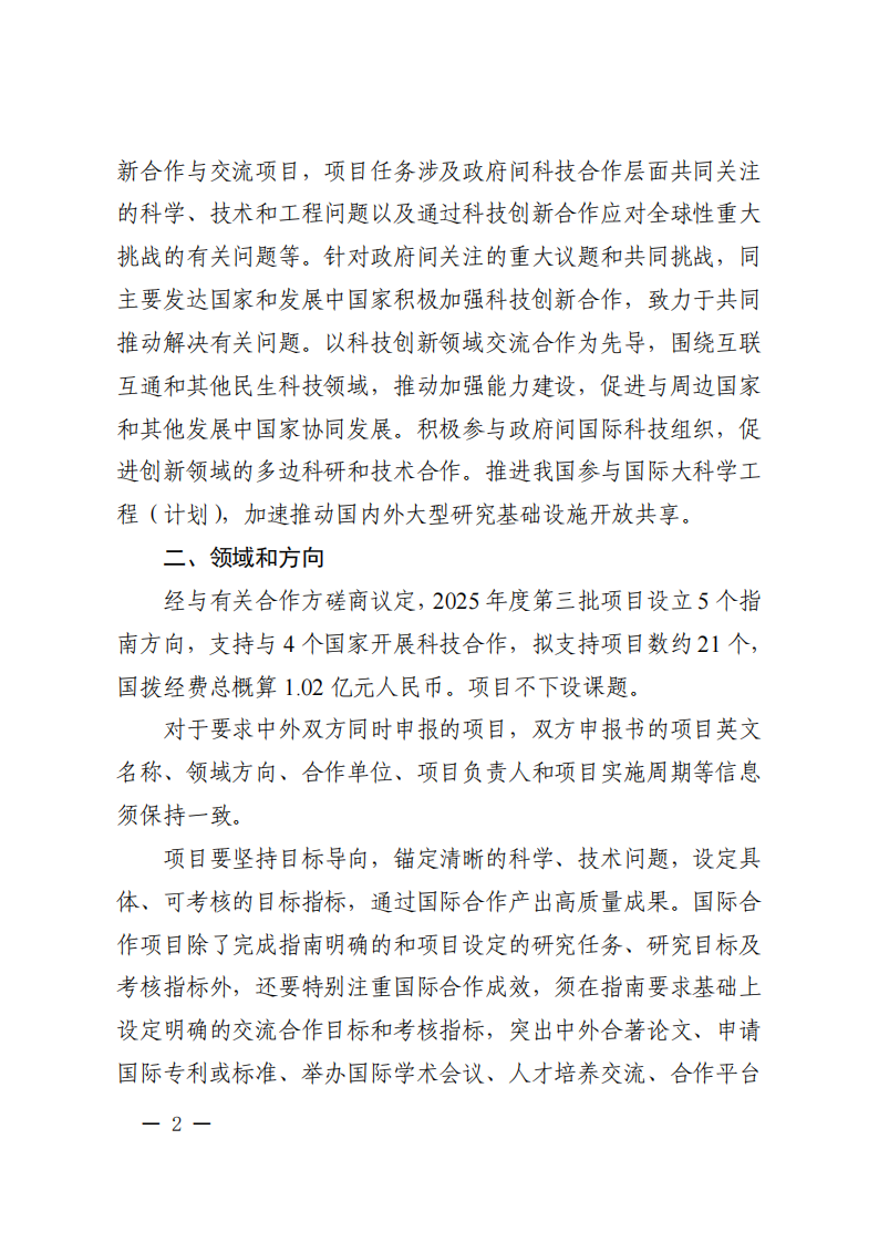 科技部国际合作司关于发布国家重点研发计划“政府间国际科技创新合作”重点专项2025年度第三批项目申报指南的通知