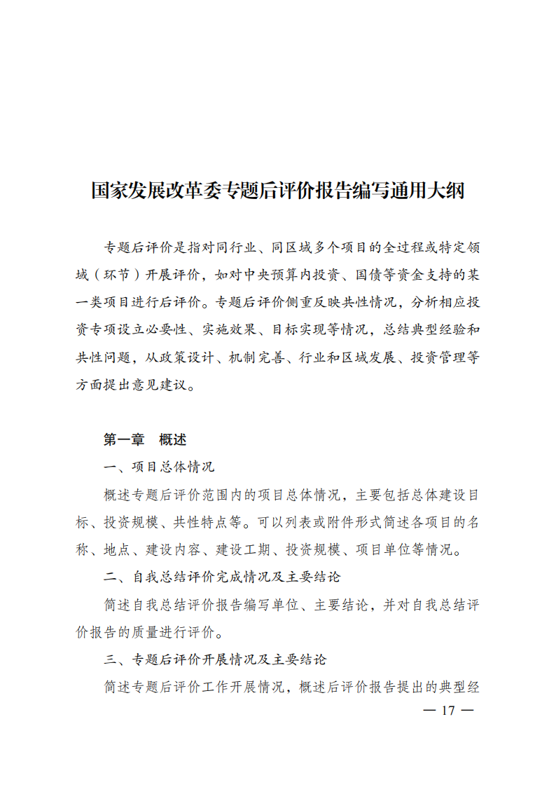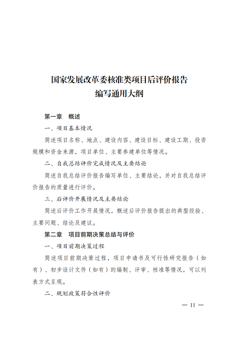 国家发改委|关于印发国家发展改革委重大项目后评价报告编写通用大纲的通知