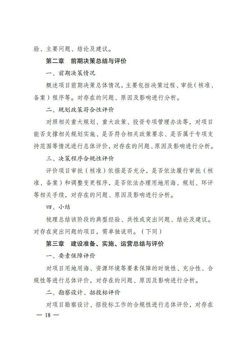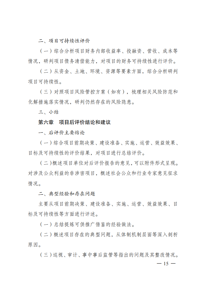 为进一步规范重大项目后评价工作,根据《国家发展改革委重大项目后评价管理办法》(发改评督规〔2024〕1103号)相关规定,我们编制了国家发展改革委重大项目后评价报告编写通用大纲,分为政府投资项目、核准类项目、专题后评价报告3类。现印发给你们,请结合实际参照执行。