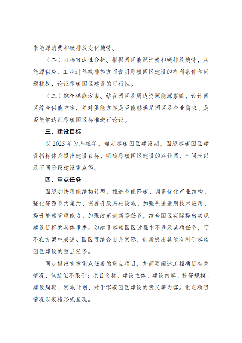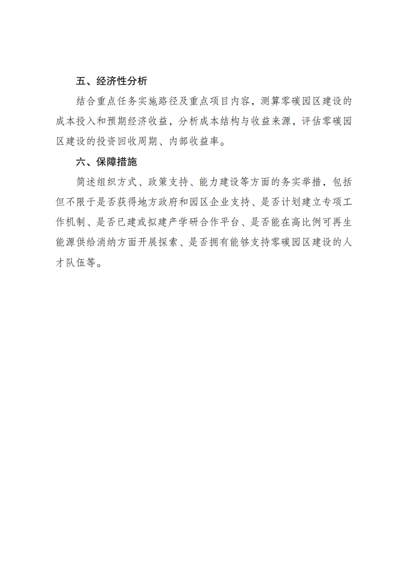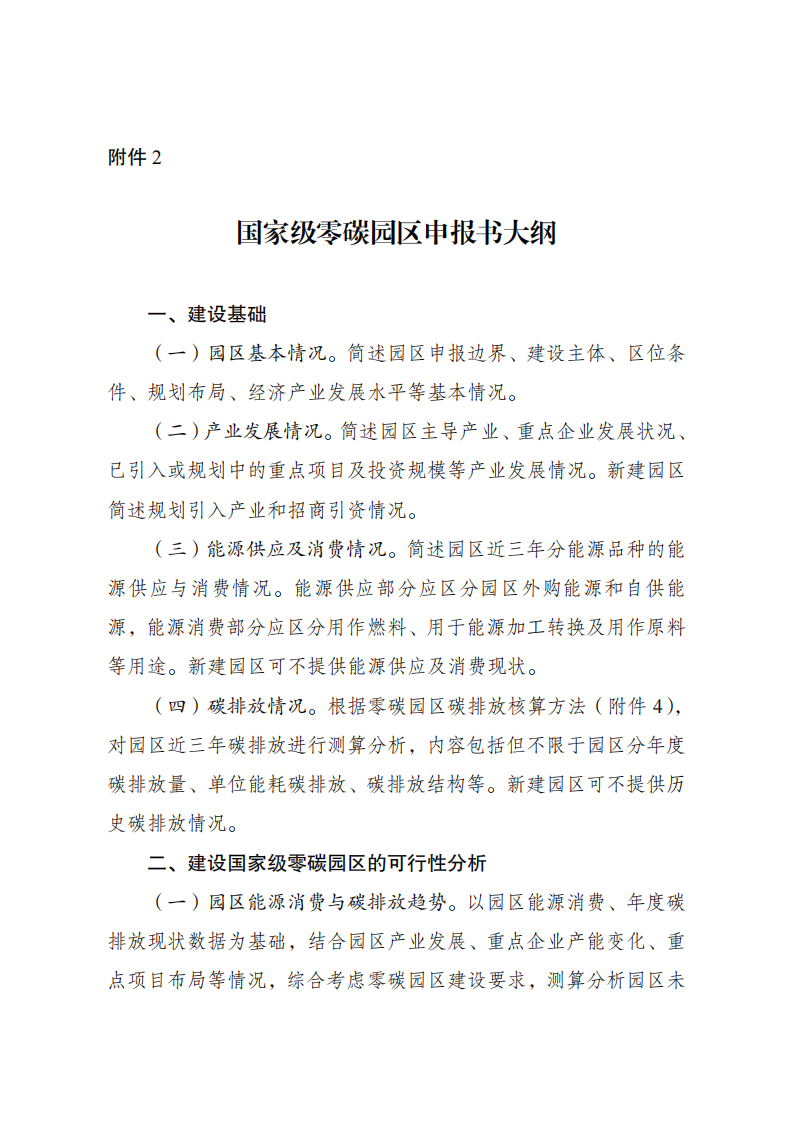 (二)组织园区申报。在综合考虑能源禀赋、产业基础、电力安全可靠供应、减碳潜力等因素基础上,各地区发展改革委要会同本地区工业和信息化、能源主管部门等推荐有条件、有意愿的园区建设国家级零碳园区(基本条件见附件1),并指导园区综合分析项目可行性,测算经济、环境、社会效益,按要求编制申报书(大纲见附件2)。各地区推荐园区数量不超过2个,于8月22日前将推荐园区名单及建设方案报送国家发展改革委(环资司)。