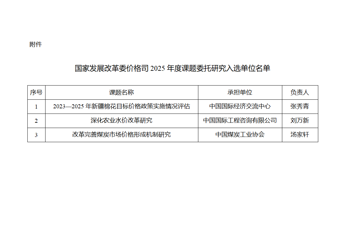 国家发展改革委价格司关于2025年度课题委托研究入选单位的公告