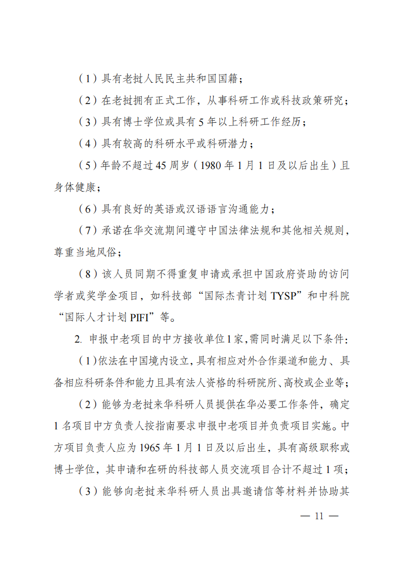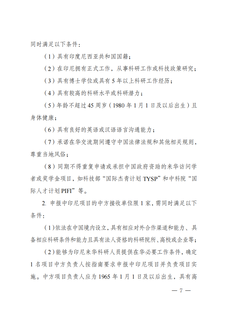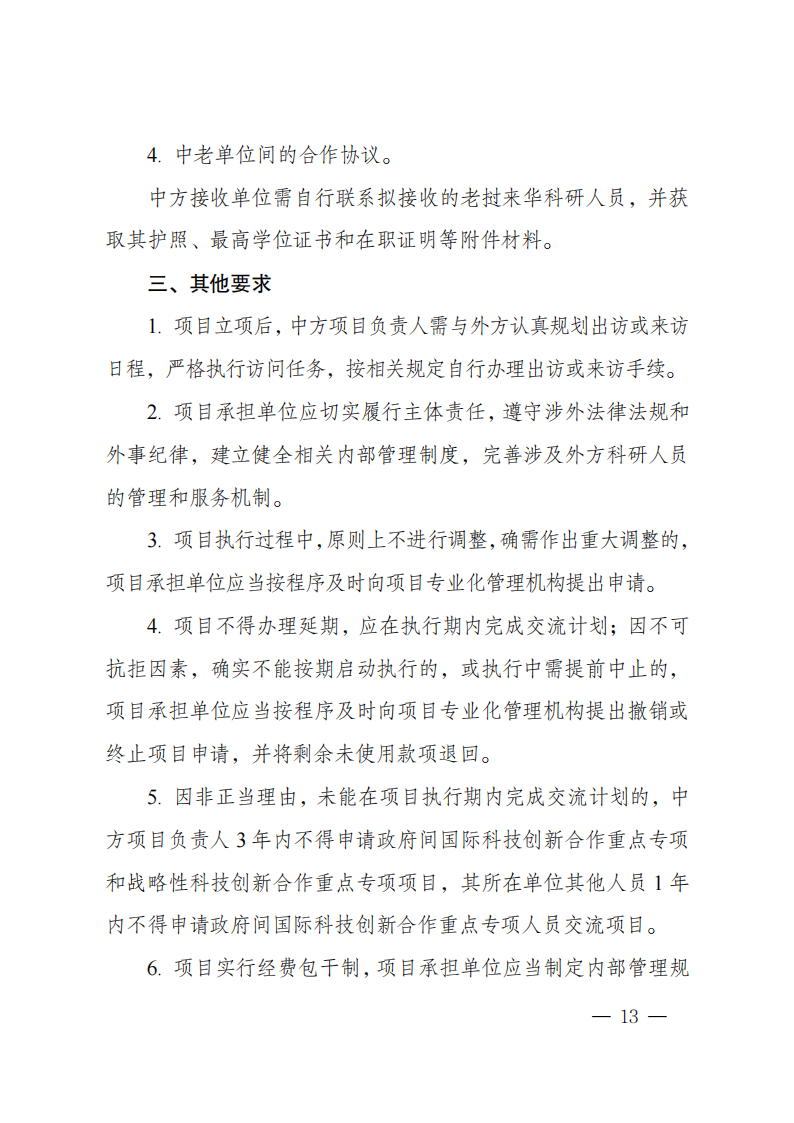 3. 本批次指南项目属于“政府间国际科技创新合作”重点专项人员交流类项目,不计入项目负责人申请和承担国家重点研发计划项目、国家科技重大专项(含科技创新2030—重大项目)的项目总数限项范围(不进行项目负责人限项联合审查),但项目负责人申请和在研的同一国别的人员交流类项目合计不得超过1项。