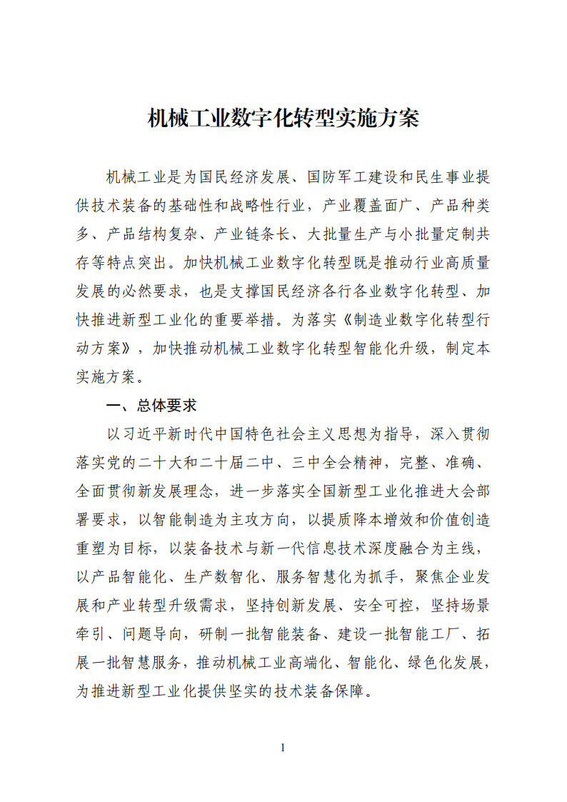 工业和信息化部等八部门关于印发《机械工业数字化转型实施方案》的通知