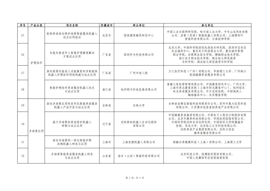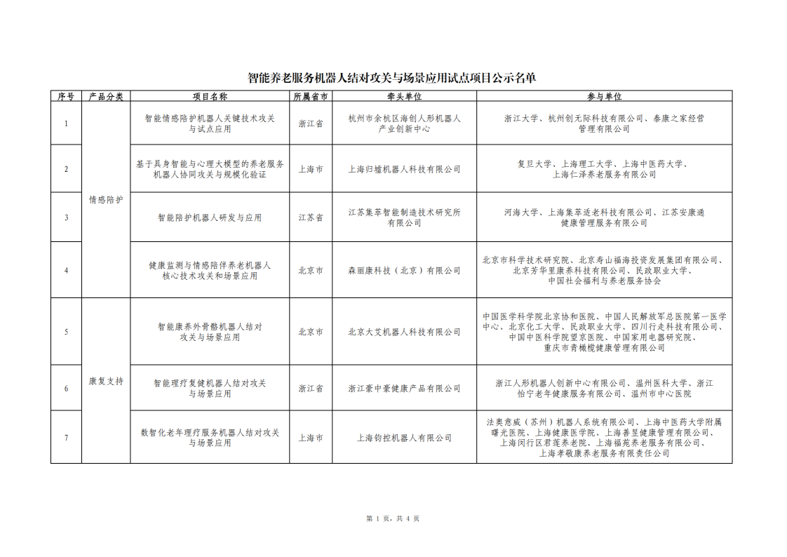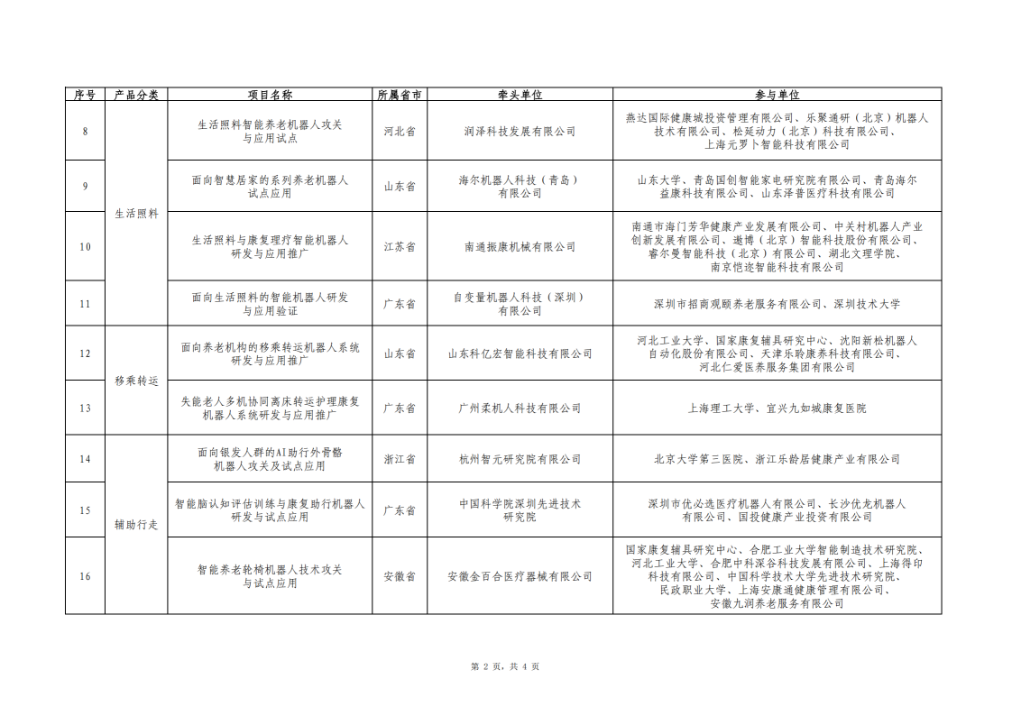 智能养老服务机器人结对攻关与场景应用试点项目名单公示