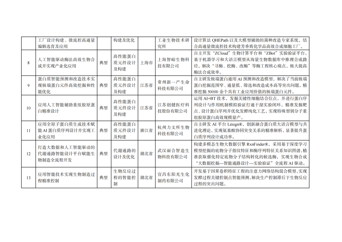 工业和信息化部办公厅关于印发人工智能在生物制造领域典型应用案例(第一批)的通知