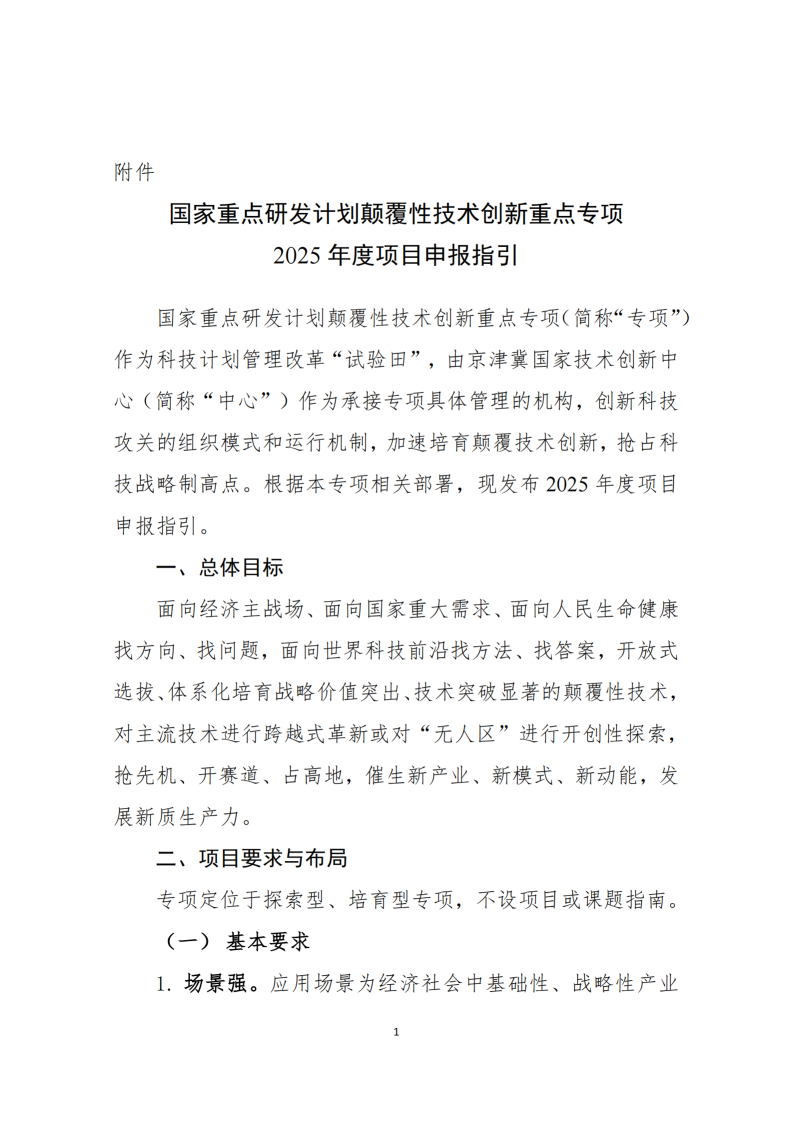 国家重点研发计划颠覆性技术创新重点专项能源低碳联合项目2025年度煤炭清洁高效利用项目申报指引