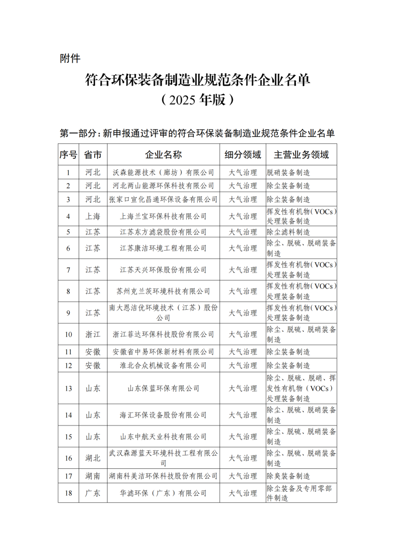 附件:符合环保装备制造业规范条件企业名单(2025年版)