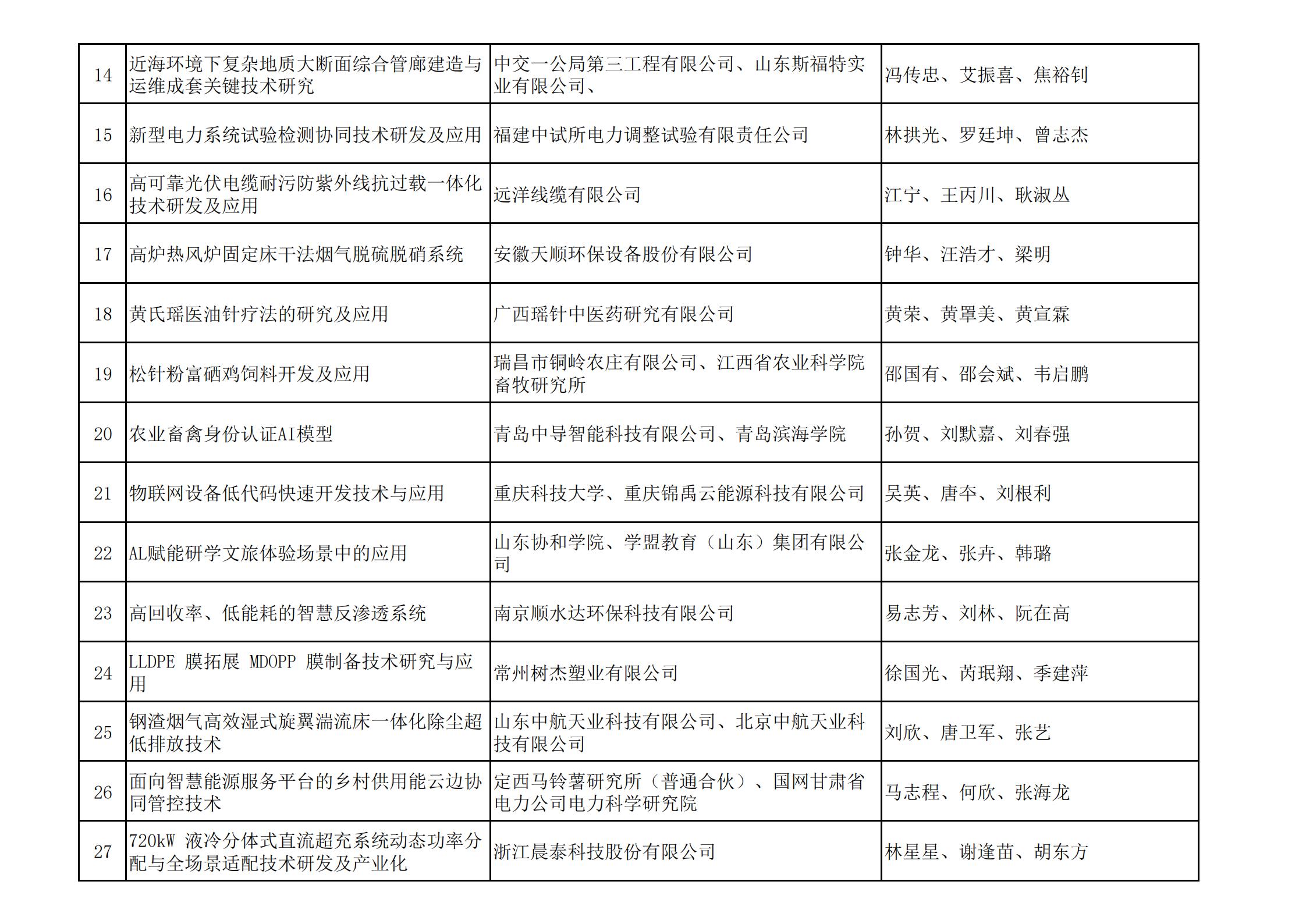 附件:科技创新奖拟获奖名单 优秀民营科技企业奖拟获奖名单