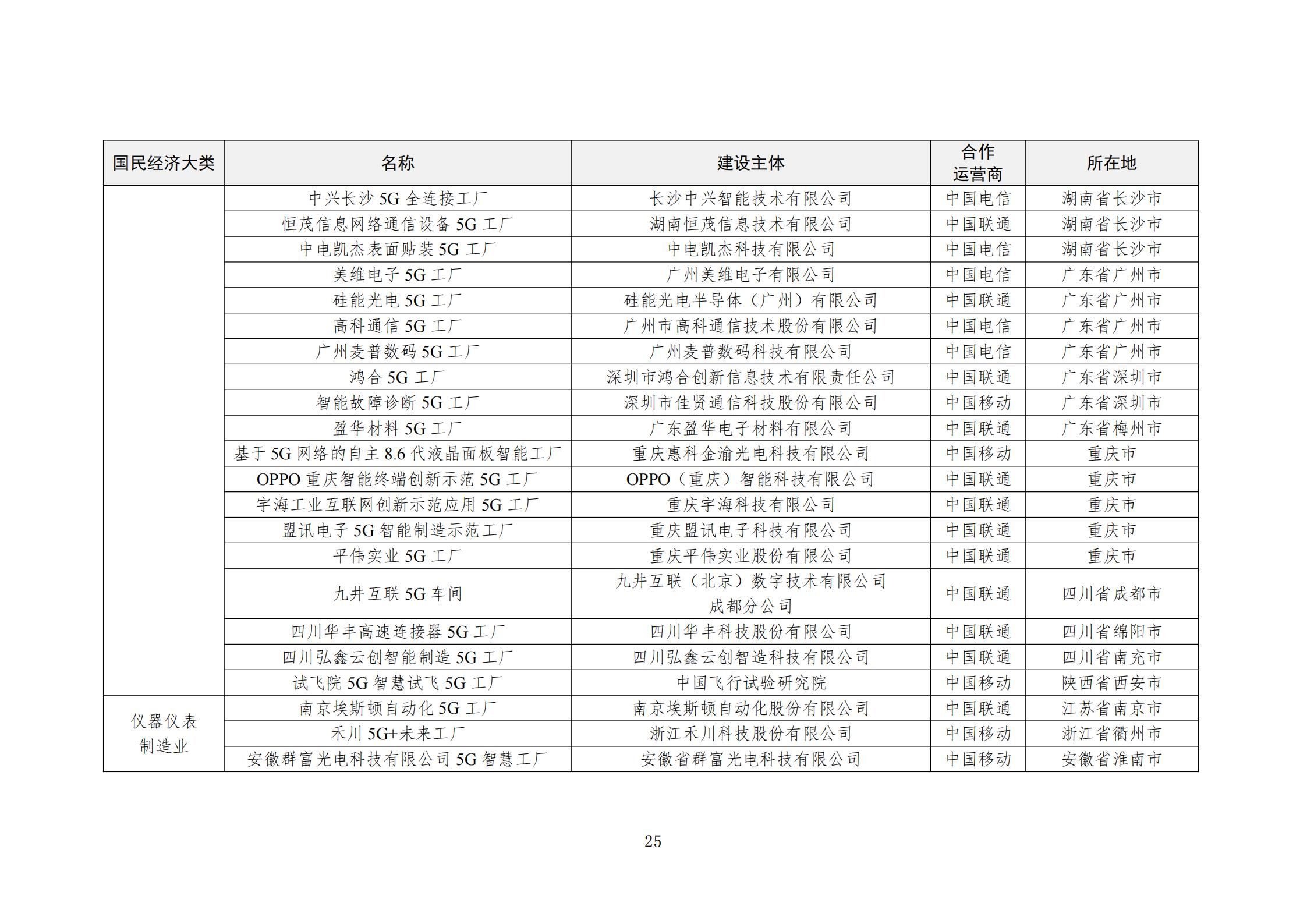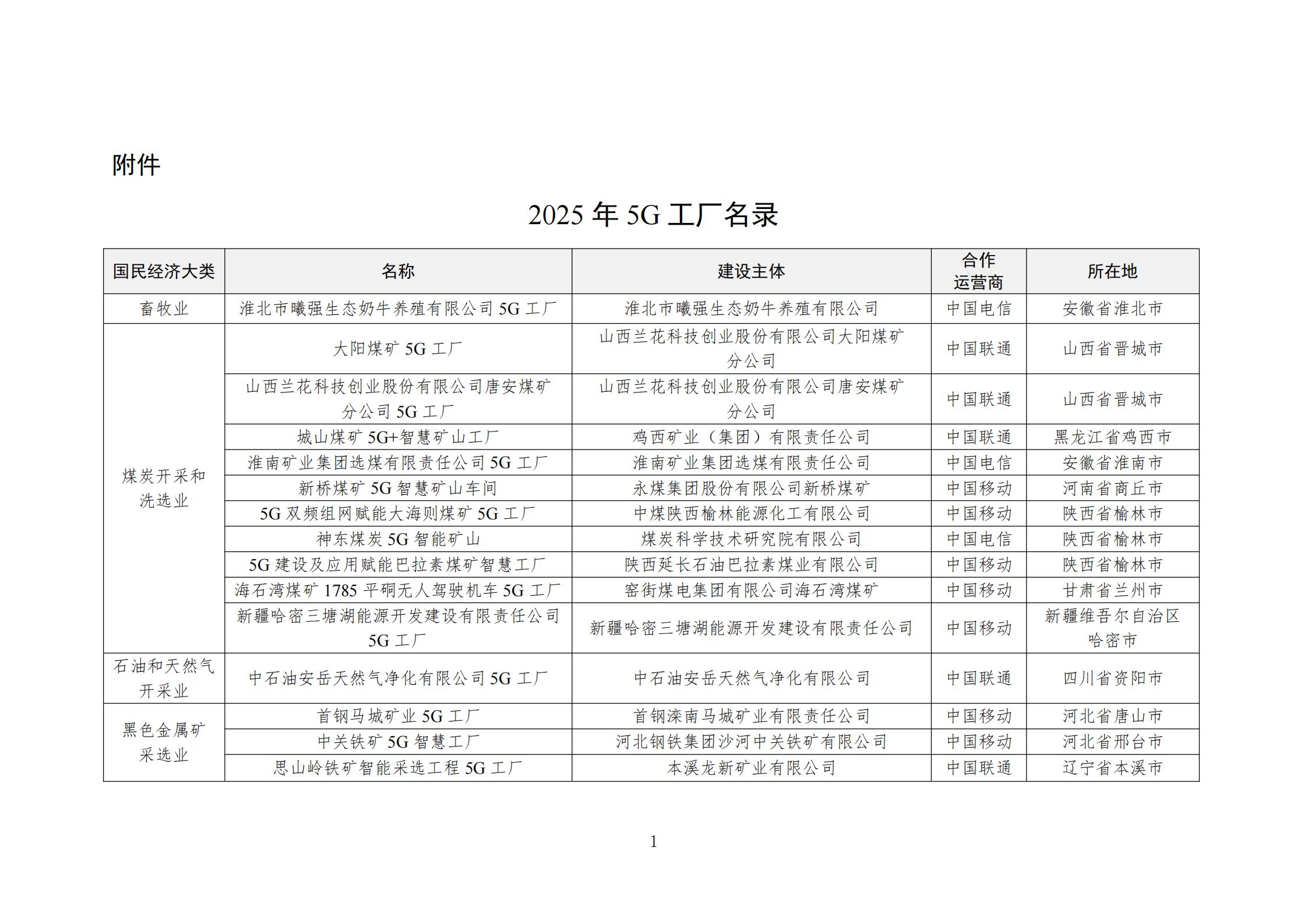 认真落实党中央、国务院决策部署,深入推进“5G+工业互联网”创新发展,加快高水平5G工厂建设,各地依据《5G全连接工厂建设指南》(工信厅信管〔2022〕23号)持续培育建设5G工厂,有力带动传统产业转型升级。经地方推荐、专家评审等工作,形成《2025年5G工厂名录》(见附件),共包括48个行业、560个项目,现进行公示,欢迎社会各界监督。如有异议,请在公示期内与我们联系。