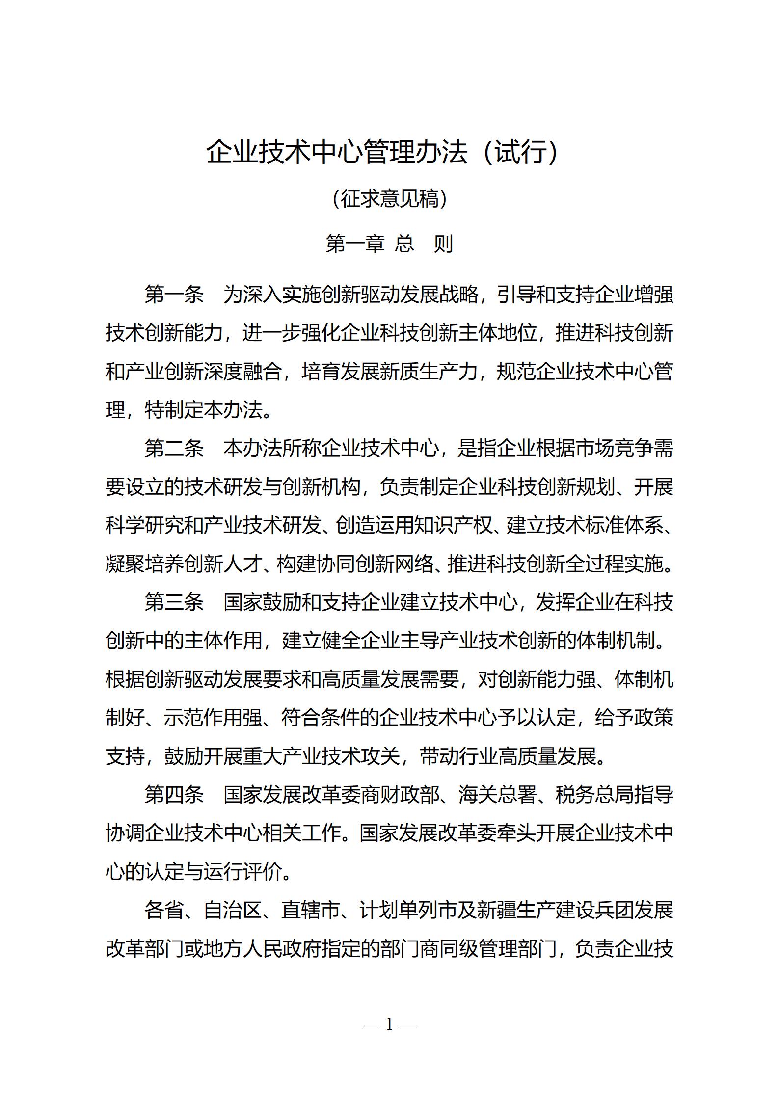 关于向社会公开征求《企业技术中心管理办法
