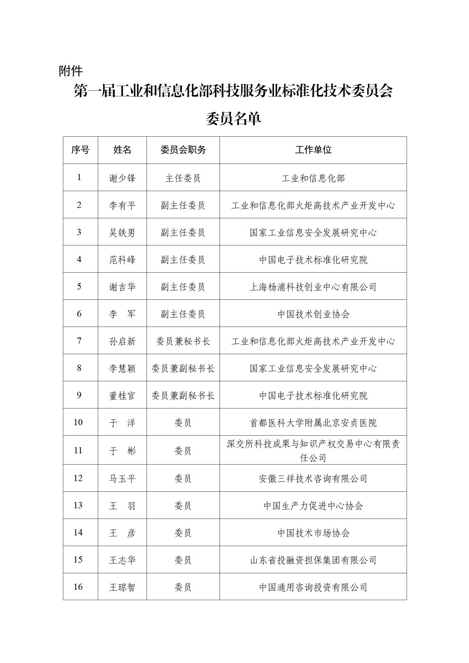 附件:第一届工业和信息化部科技服务业标准化技术委员会委员名单