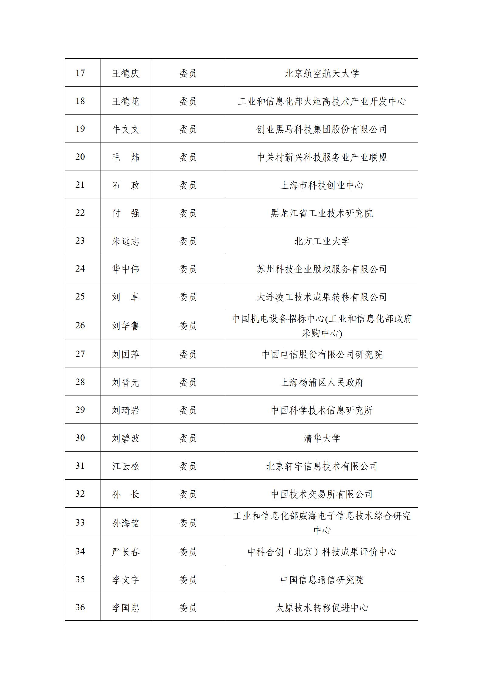 工业和信息化部科技服务业标准化技术委员会,编号为MIIT/TC6,主要负责技术转移转化服务、企业孵化服务、技术推广服务等领域行业标准制修订工作。
