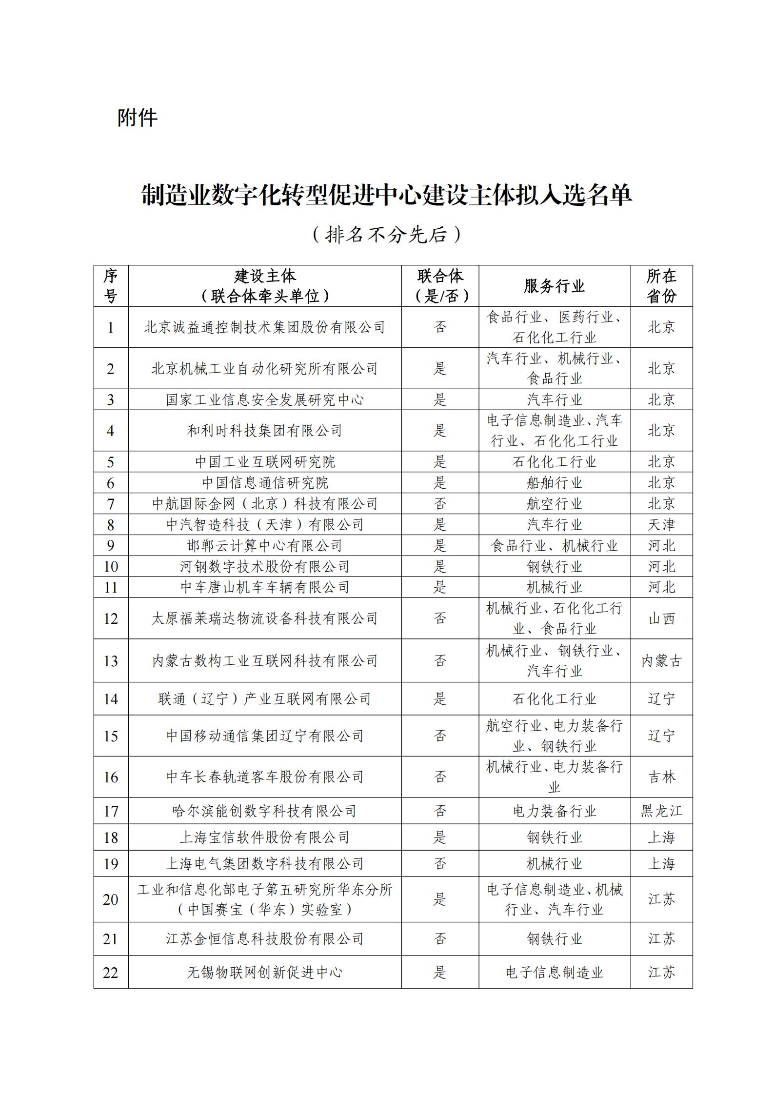 制造业数字化转型促进中心建设主体拟入选名单公示