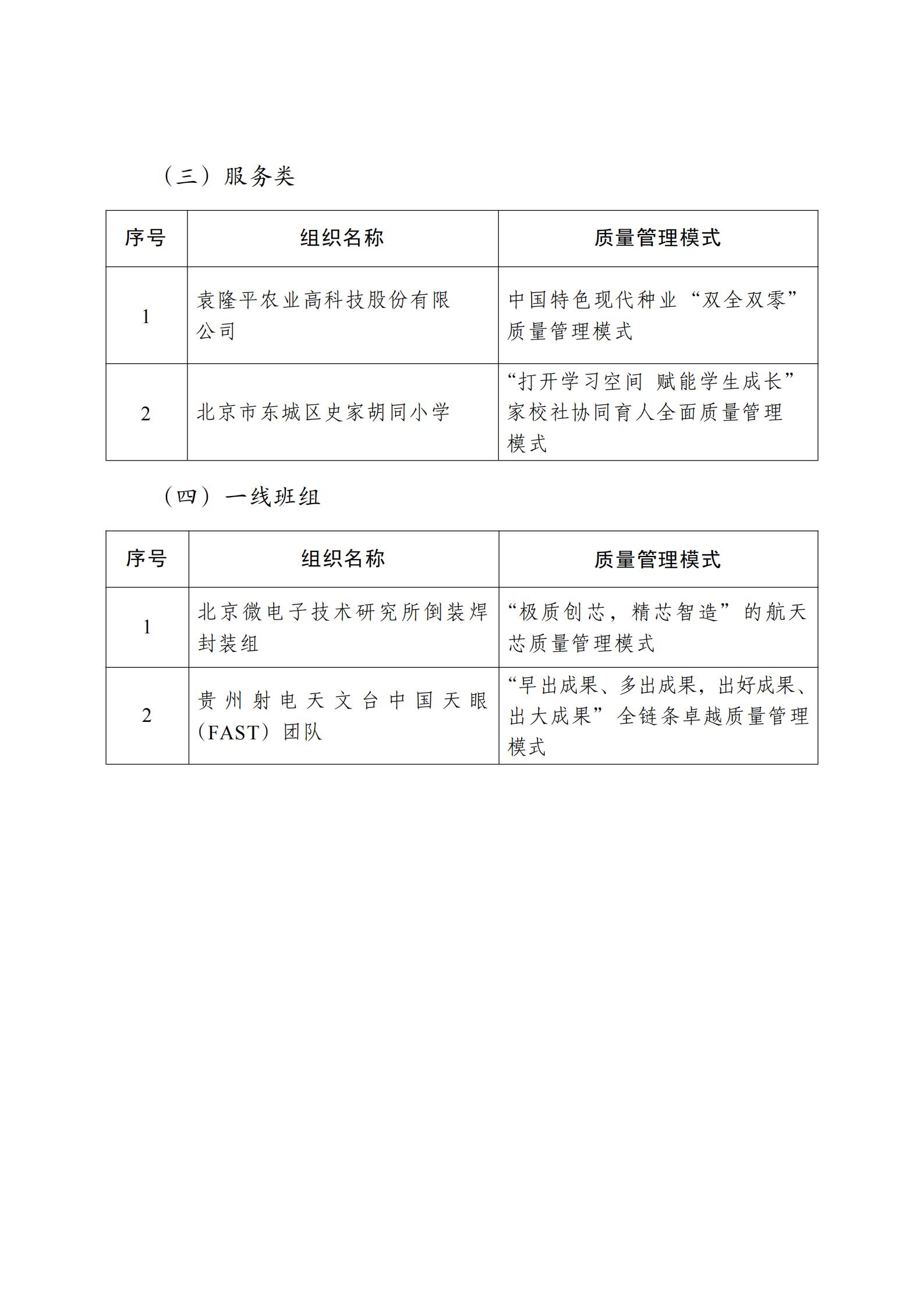 为表彰先进、选树典型,市场监管总局根据《中国质量奖管理办法》规定,会同有关部门成立中国质量奖评选表彰委员会,开展第五届中国质量奖评选表彰工作。经各地区各行业推荐、评选表彰委员会严格评审和市场监管总局审定,决定授予杭州海康威视数字技术股份有限公司、江苏亨通光电股份有限公司、TCL科技集团股份有限公司、万华化学集团股份有限公司、中国三峡建工(集团)有限公司、袁隆平农业高科技股份有限公司、北京市东城区史家胡同小学、北京微电子技术研究所倒装焊封装组、贵州射电天文台中国天眼(FAST)团队等9家组织第五届中国质量奖,授予安波福中央电气(上海)有限公司等78家组织和太原重型机械集团有限公司樊志勤等6名个人第五届中国质量奖提名奖。