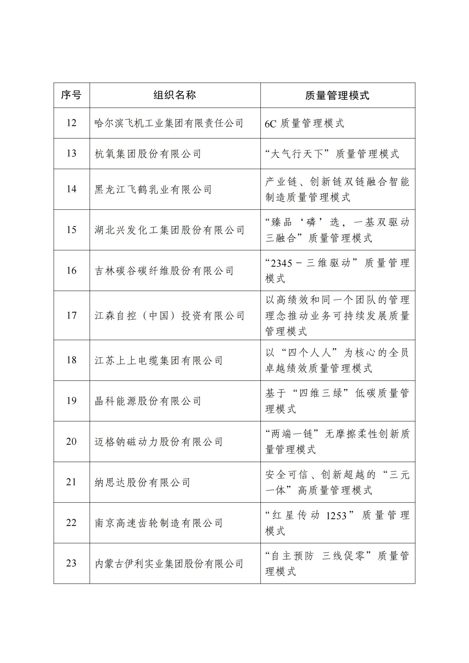 这些组织和个人都是所在行业的佼佼者,坚持视质量为生命,以高质量为追求,在质量提升、创新发展、品牌建设、社会效益等方面取得了显著成果。他们总结提炼出一批先进科学的、具有中国特色的质量管理模式和方法,具有很高的推广价值,对于提升全行业质量水平、推动质量强国建设具有重要意义。希望受表彰的组织和个人珍惜荣誉、再接再厉,发挥示范表率作用,持续攻坚克难,在推动企业质量效益提升、增强产业质量竞争力和带动区域高质量发展方面不断有新作为,在新时代新征程上创造更大成绩。