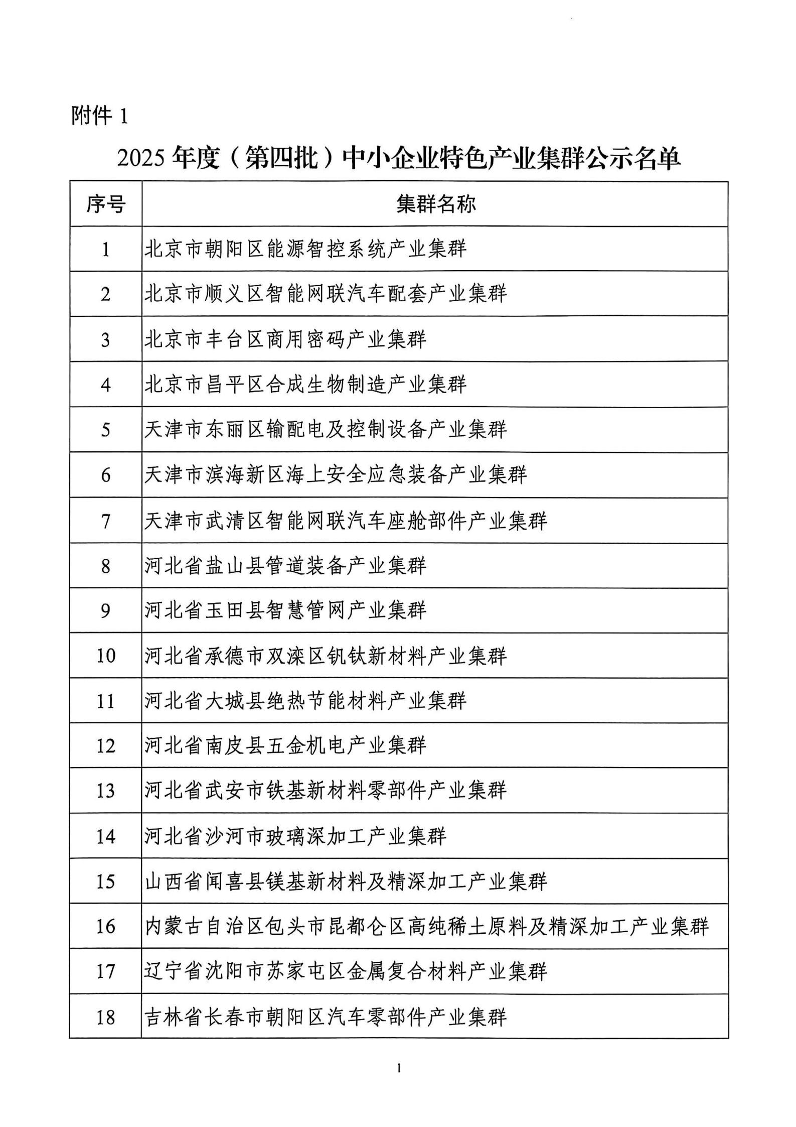 附件:1.2025年度(第四批)中小企业特色产业集群公示名单