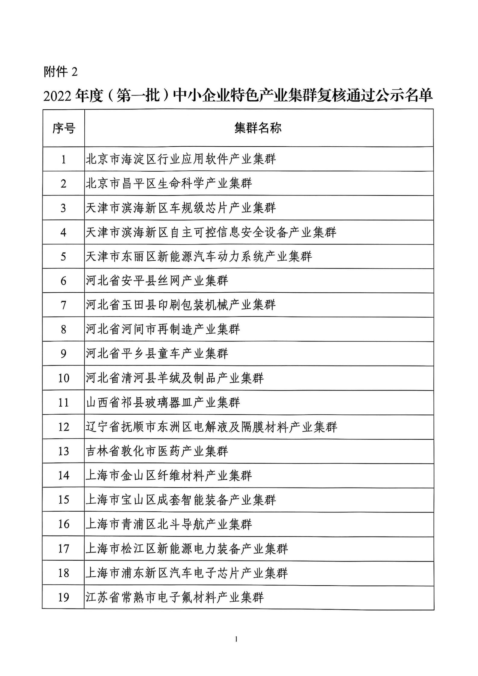 2.2022年度(第一批)中小企业特色产业集群复核通过公示名单