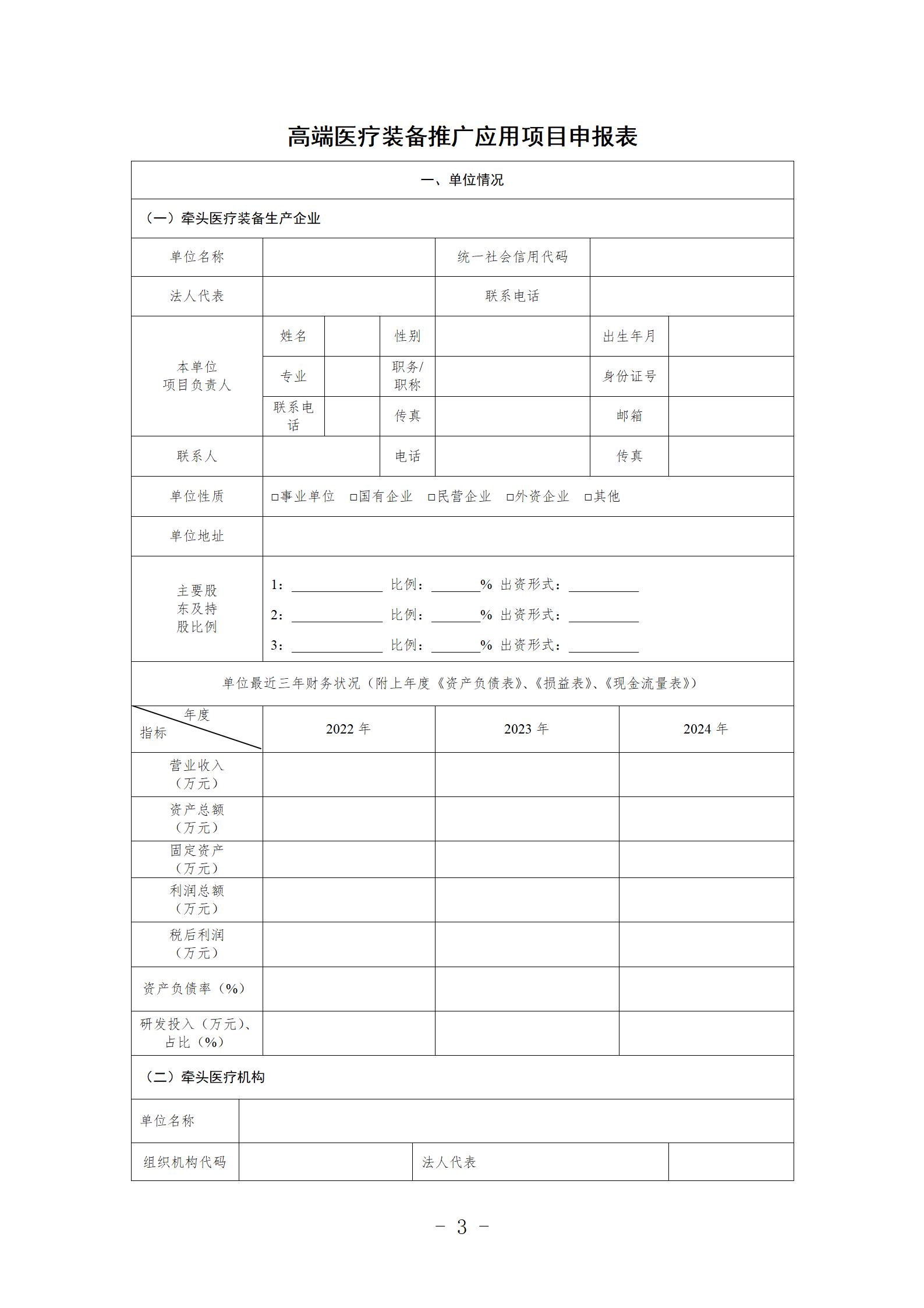 关于开展2025年高端医疗装备推广应用项目申报工作的通知