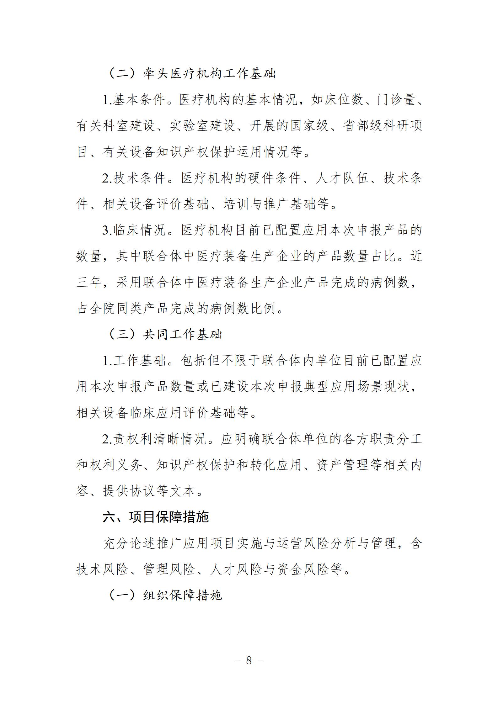 (二)组织保障要求。医工联合体应建立较为完善的医疗装备研制生产、临床研究管理和资金保障体系,医疗机构重点保障高端医疗装备临床应用研究及推广的技术和环境条件,医疗装备生产企业重点保障高端医疗装备运行安全及改进提升的技术和软硬件条件。