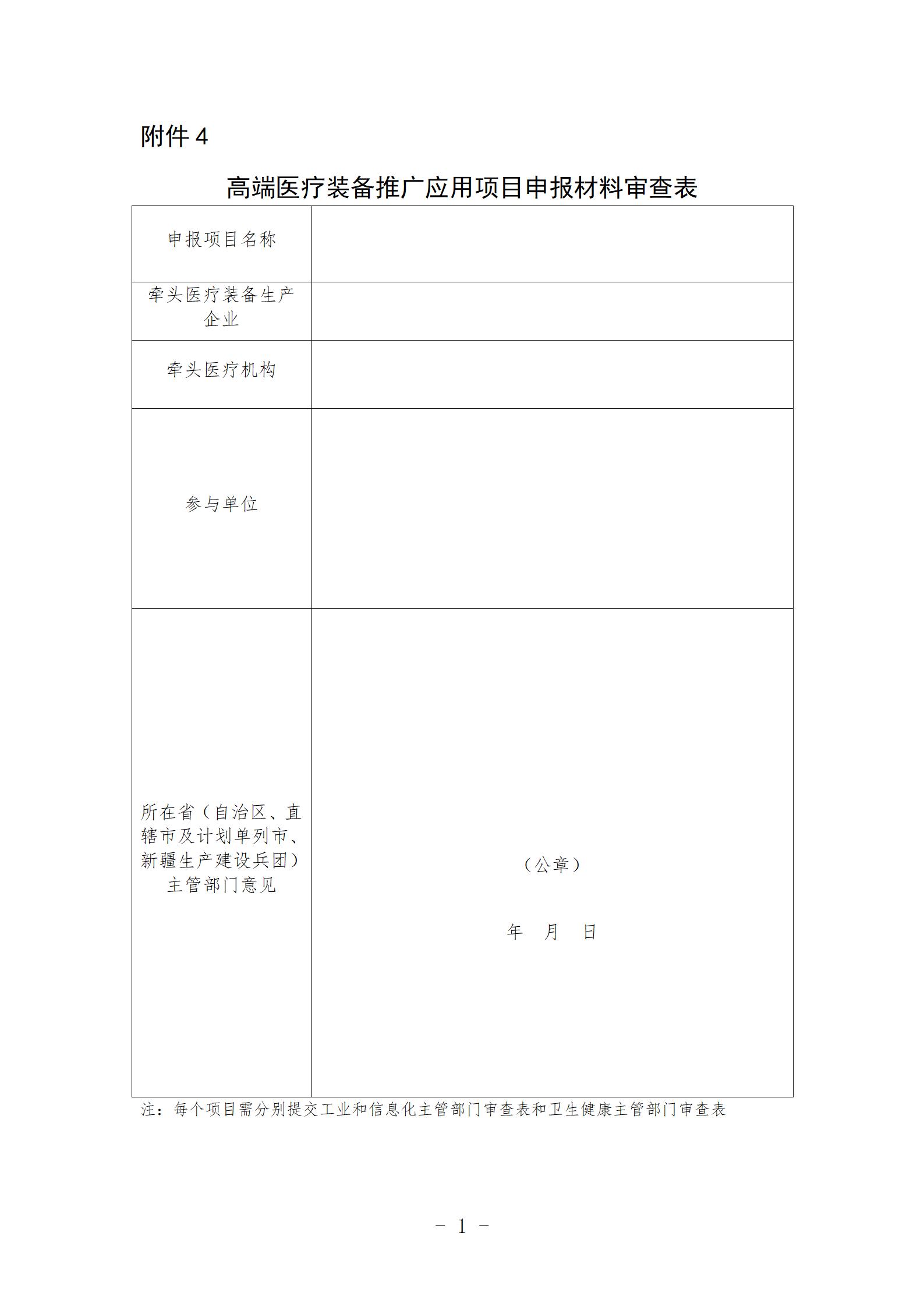 (二)材料初审。牵头医疗装备生产企业所在地的工业和信息化主管部门、牵头医疗机构所在地的卫生健康主管部门分别对单位资质和项目申报材料进行审查,并分别填写材料审查表(见附件4)。