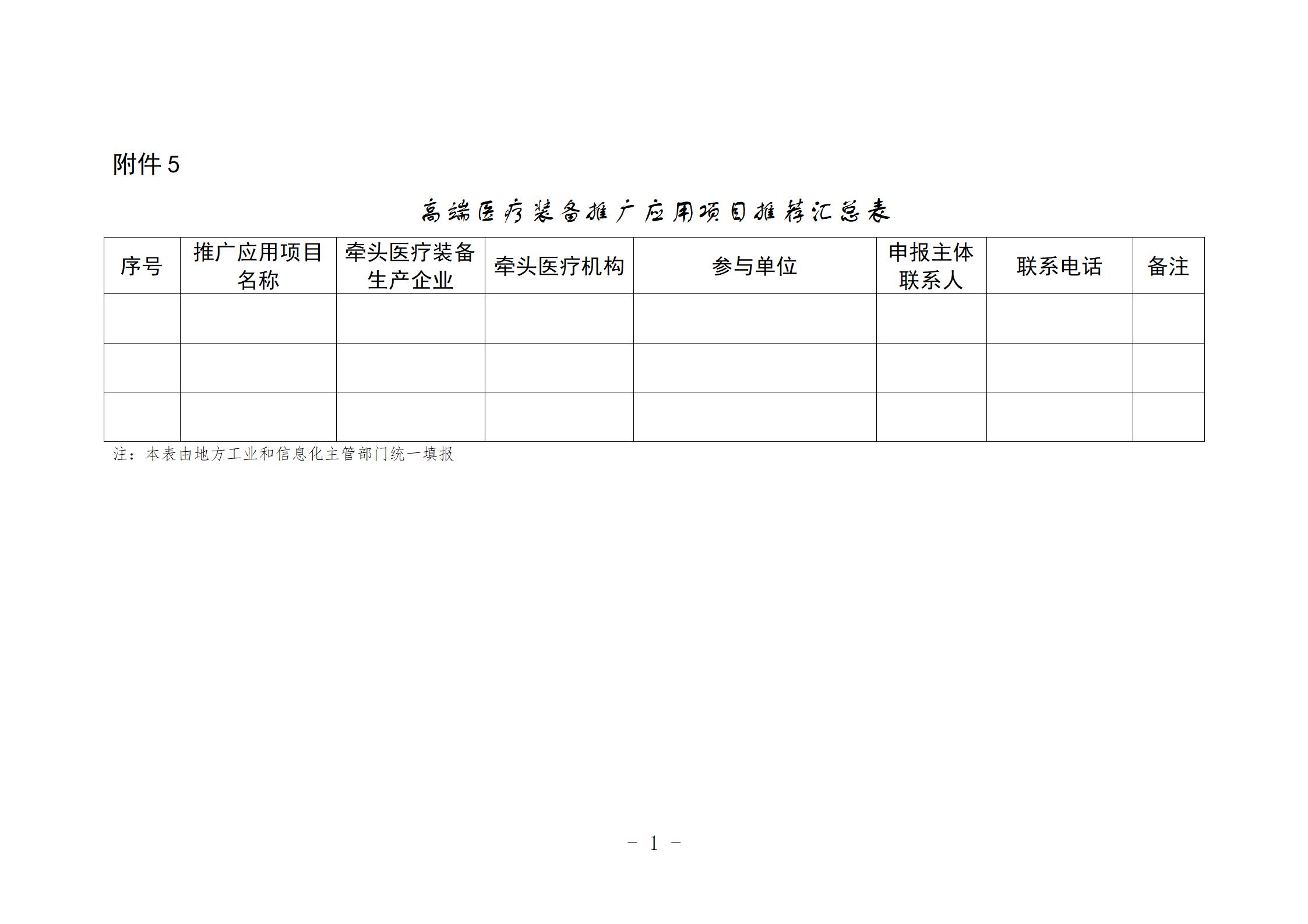 (三)地方推荐。牵头医疗装备生产企业所在地的工业和信息化主管部门于2025年11月3日前,将推荐汇总表(见附件5)、材料审查表(包括工业和信息化、卫生健康主管部门审核意见)、申报材料的纸质版和电子版一式三份报送工业和信息化部(装备工业一司)。