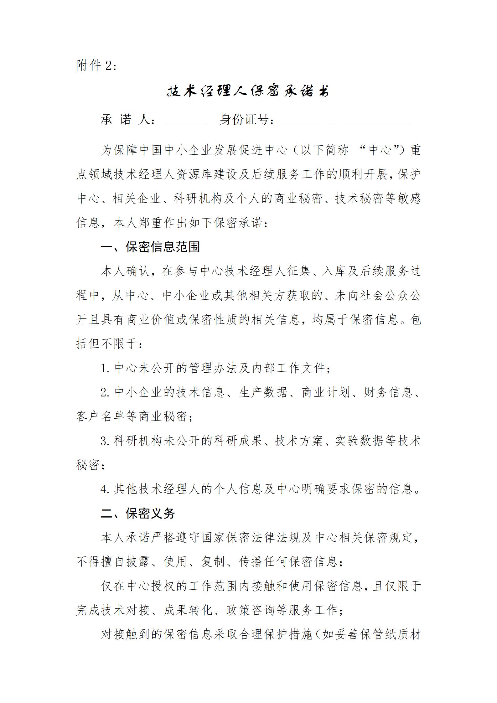 为深入贯彻落实国家创新驱动发展战略,加快推进重点领域产业科技创新与成果转化,充分发挥技术经理人在技术转移、成果转化、资源对接等环节的关键桥梁作用,助力中小企业突破创新瓶颈、提升核心竞争力,中国中小企业发展促进中心(以下简称“中心”)拟建立中小企业科技创新服务技术经理人专家库,现将公开征集入库人选有关事项通知如下: