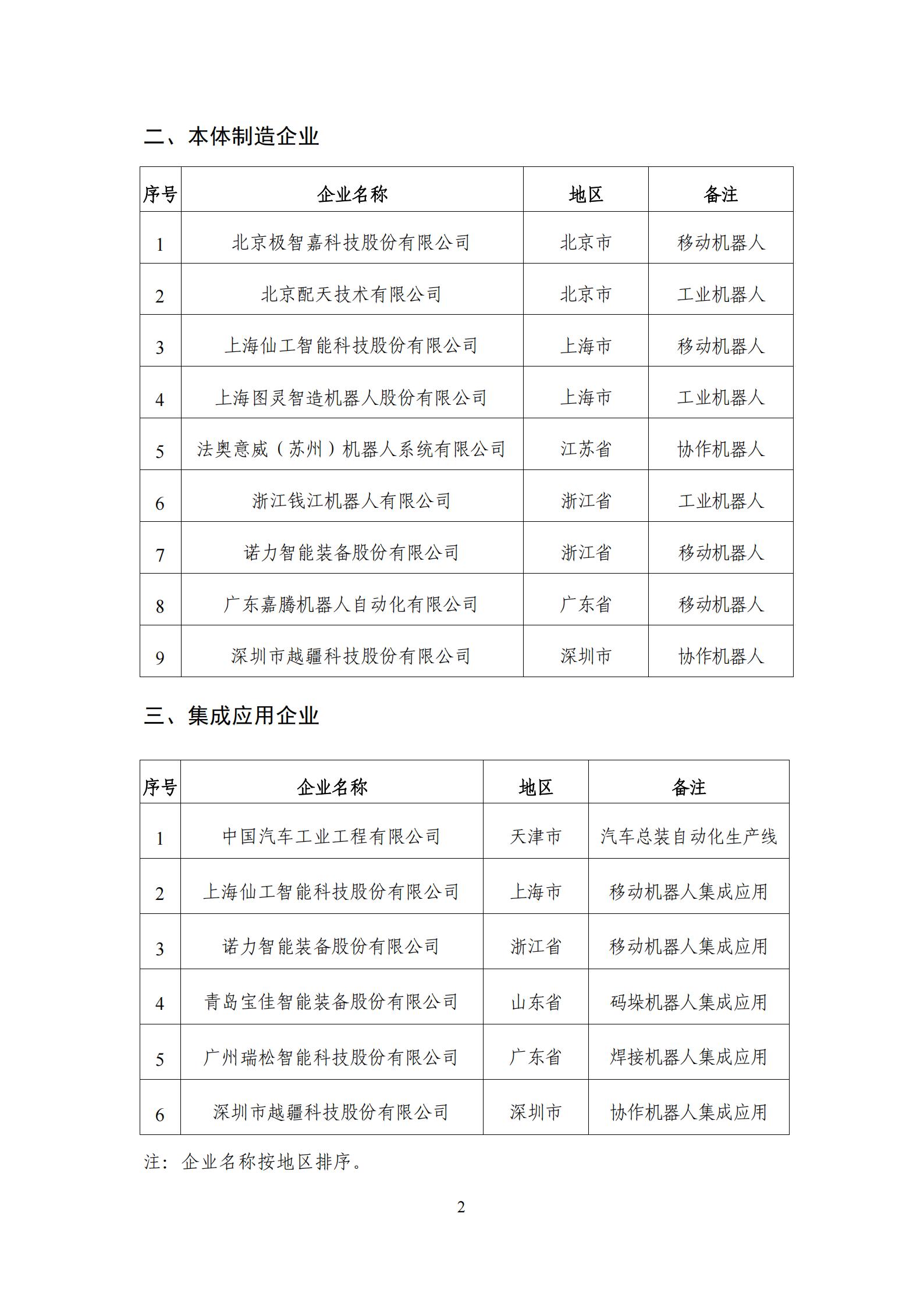拟公告的符合《工业机器人行业规范条件(2024版)》的企业名单(第二批)