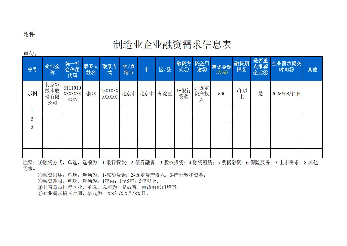 (一)请各省级工业和信息化主管部门、相关行业协会组织企业填报融资需求,客观准确梳理融资需求底数。