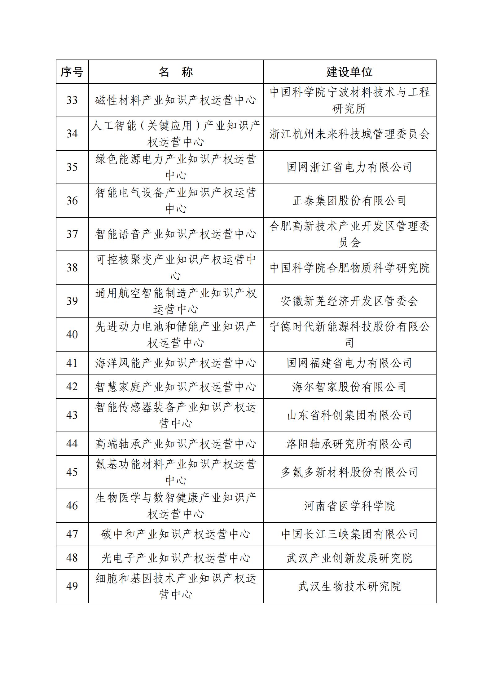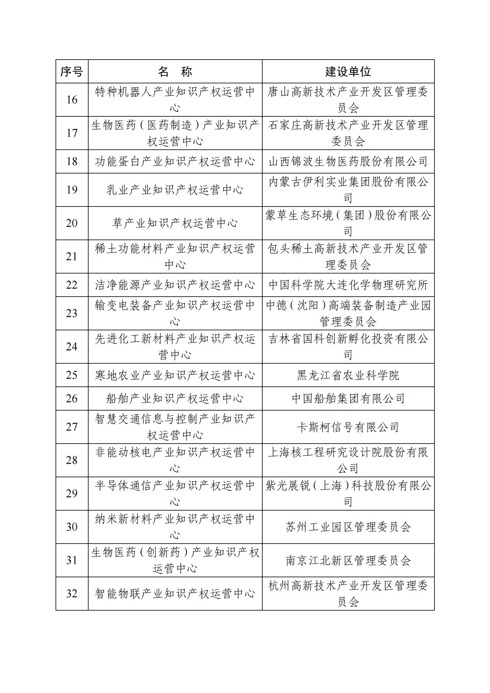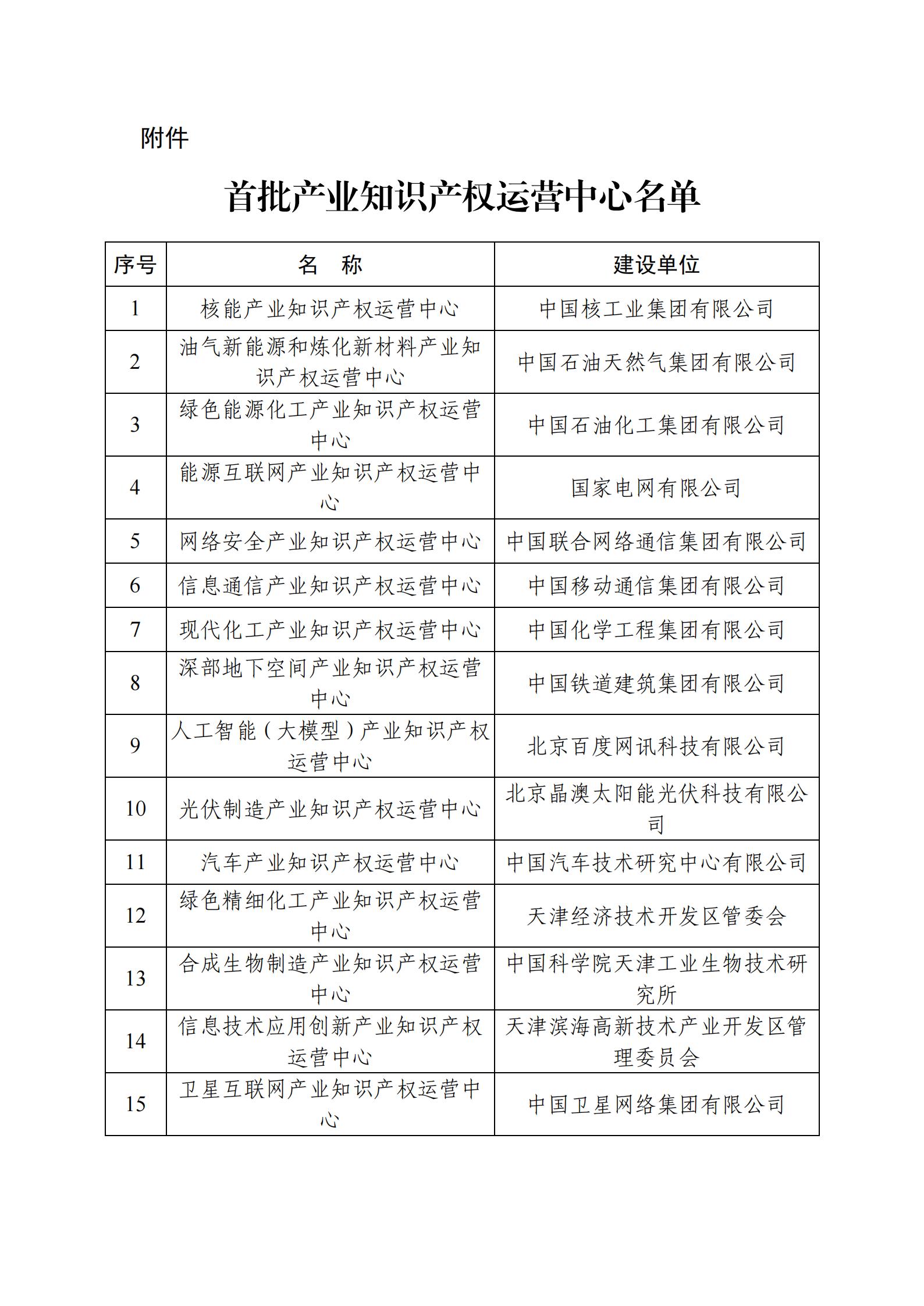 国家知识产权局办公室关于公布首批产业知识产权运营中心名单的通知